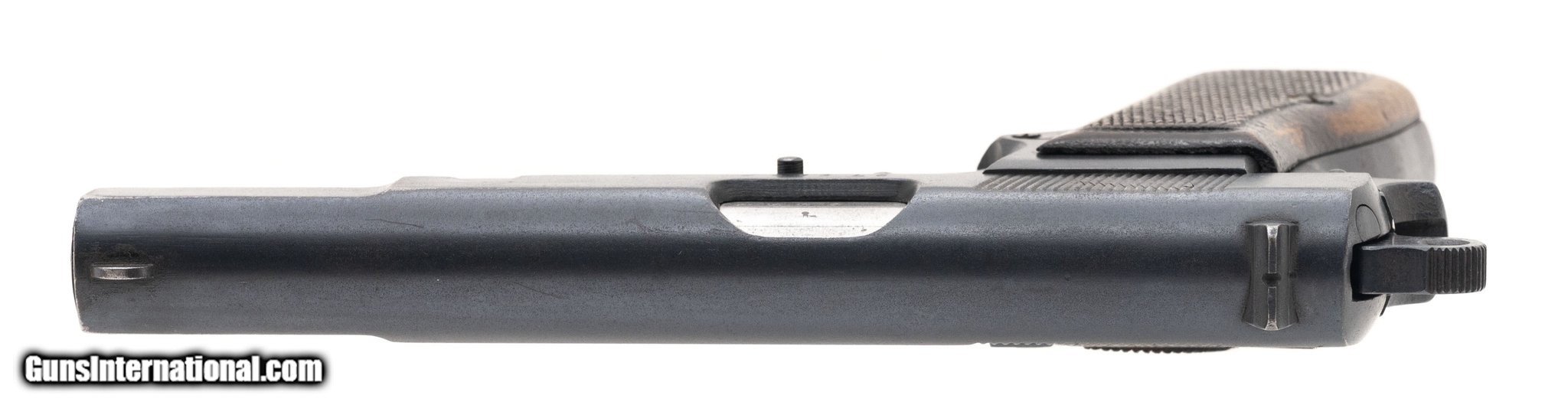 Description: Guns Listing ID: 572272 Serial No. 245B, manufactured circa 1937 by Fabrique Nationale (FN), 9mm, 4.7\" barrel. Pistol has been refinished, but retains visible factory markings and German Waffenamt inspection stamps, indicating wartime use under occupation. Serial numbers are matching. Grips have been replaced, and the magazine is unmarked. Action functions correctly. A representative early-production FN Hi-Power with signs of service. (PR65177) Curio/Relic: Yes Manufacturer: FN Model: PRE-WWII HI-POWER Caliber Info: 9MM LUGER (9x19 PARA) Condition: Used - Non-Certified Barrels: 4.7" BARREL Action: SEMI AUTOMATIC Finish: blued Price: $1,595.99 Contact Seller |