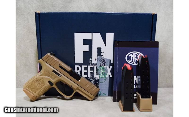Description: FN model Reflex is a semi-auto pistol chambered in 9mm Luger in excellent condition. The FN has a 3" barrel and overall length of 6" and comes with the Original manufacture box, 3 (15) magazines, and manual. 9mm Luger SOLD Metal Condition: Excellent Bore Condition: Excellent Barrels: 3 Weight: 2 lbs Sights: 3 White DOTS Item Location: Chesterfield, MI |