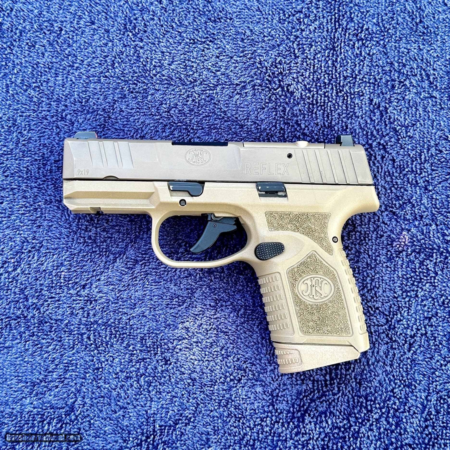 Description: Guns Listing ID: 1205410 Overall excellent condition, less than 200 rounds put through. There is some very slight holster wear. Comes with original box and papers, Three (3) 15rd mags and one (1) 11rd mag. SOLD Manufacturer: FN Model: Reflex MRD Caliber Info: 9MM LUGER (9X19 PARA) Condition: Used - Non-Certified Barrels: 3.3 BARREL Finish: FDE |