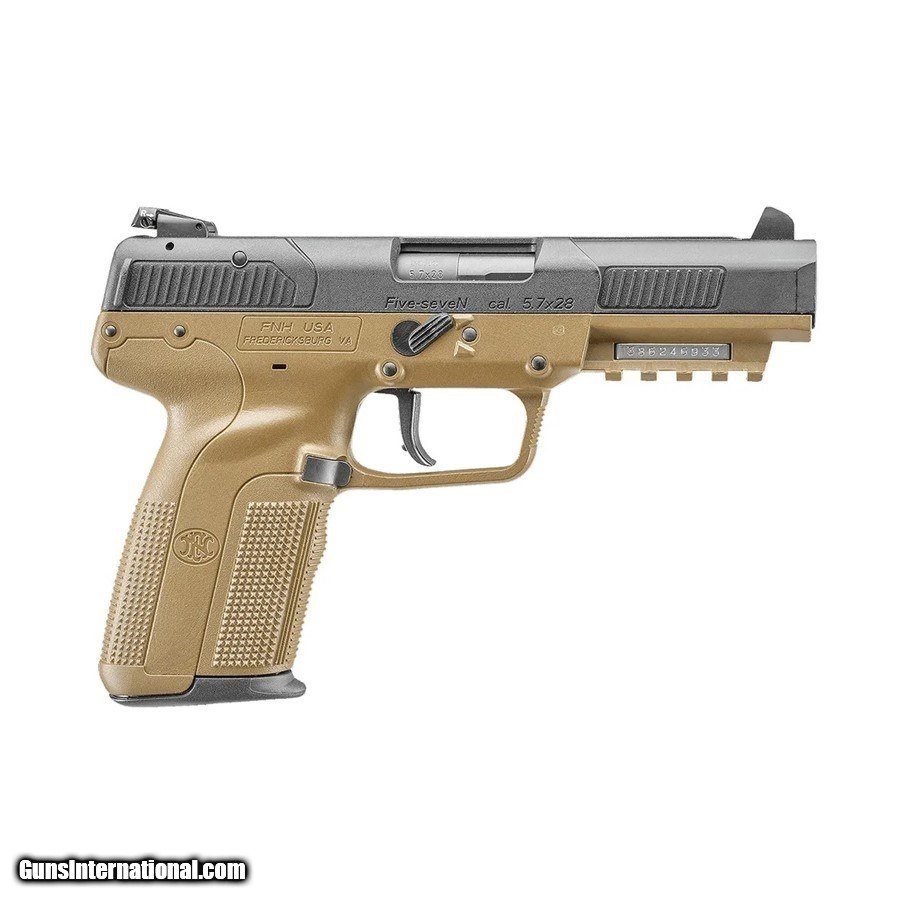 Description: Brand new in the box, in stock and ready to ship. Buy it now! Manufacturer: FNH USA Model: FN Five-seveN® SKU: 3868929352 Caliber: 5.7x28mm Capacity: (2) 10 Round Magazines Barrel Length: 4.8" Chrome-Lined, Cold Hammer Forged Rate of Twist: 1 in 9" RH Frame: Polymer - Flat Dark Earth MIL-STD-1913 Accessory Mounting Rail Slide: Steel, Black Polymer Cover Grips: Checkered Polymer FDE Overall Length: 8.2" Sights: Adjustable 3-Dot Weight 21 oz The FN Five-seveN® FDE pistol was developed in the early 1990s and features a cold hammer-forged barrel that is chrome-lined for extended service life. Featuring FN’s military-inspired FDE, the Five-seveN® FDE is born for the battlefield. The polymer-framed FN Five-seveN® FDE offers single-action operation, low felt recoil, 10-round magazine capacity, an ambidextrous, forward-mounted manual safety, and an accessory rail that accepts tactical lights and lasers. KNOW YOUR LOCAL AND STATE LAWS!! ORDERS WILL ONLY BE ACCEPTED FROM US RESIDENTS OF THE LOWER 48 STATES, ALASKA AND HAWAII. OUR FFL CLASS DOES NOT ALLOW FOR THE EXPORT OF FIREARMS, THEREFORE WE CANNOT SHIP OUT OF THE US. IF YOU ARE INTERESTED IN PURCHASING THIS ITEM, PLEASE COMPLETE YOUR ORDER BY REFERRING TO THE "SELLER'S INFORMATION" ABOVE. SOLD Handgun Caliber: 5.7x28mm |