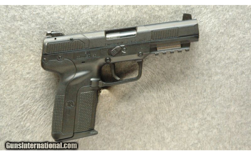 Description: FNH Model Five-Seven pistol 5.7x28mm. Appears as new, FNs unique semi auto pistol chambered in 5.7x28. Adopted by some European police forces, this one comes with three 20 rd mags and a hard case. SOLD Caliber Info: 5.7x28mm Metal Condition: Excellent, Appears As New Bore Condition: Bright Barrels: 5 Triggers: Striker Fired with Manual Safety Lever Stock: Polymer Frame with Integral Grip Fore End: Rail for Accessory Mounting Weight: 1 Lb 14 ozs Sights: 3 Dot Adjustable Iron Sights Extras: With three 20 rd mags and hard case Item Location: La Vista, NE |