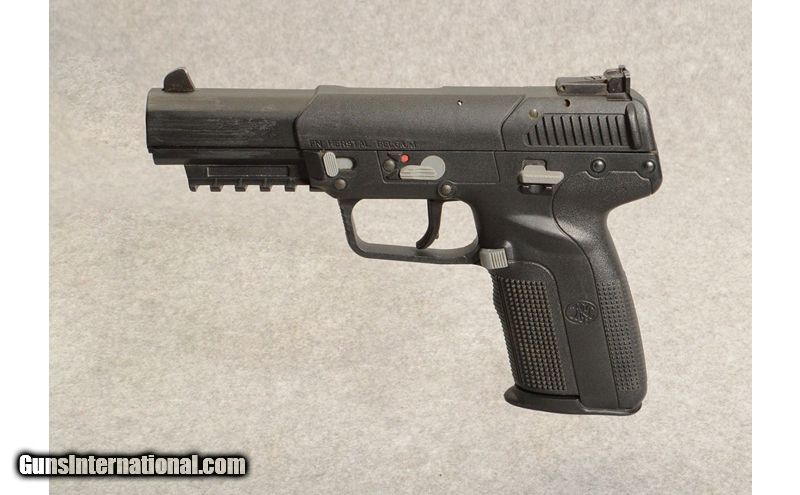 Description: The FN Five-seveN ® pistol was developed in the early 1990s and features a cold hammer-forged barrel that is chrome-lined for extended service life. The polymer-framed FN Five-seveN ® offers single-action operation, low felt recoil, 20-round magazine capacity, and is equipped with an ambidextrous, forward-mounted manual safety, and an accessory rail that accepts tactical lights and lasers. 5.7X28mm SOLD Chambers: Comes with 4 each 20-round magazines Bore Condition: Excellent Barrels: 4.8" Cold Hammer Forged Stainless Steel with hard chrome chamber and bore Triggers: Serrated, with large textured trigger guard Butt Pad: Textured Sights: Adjustable 3-Dot sights Item Location: Garner, NC |