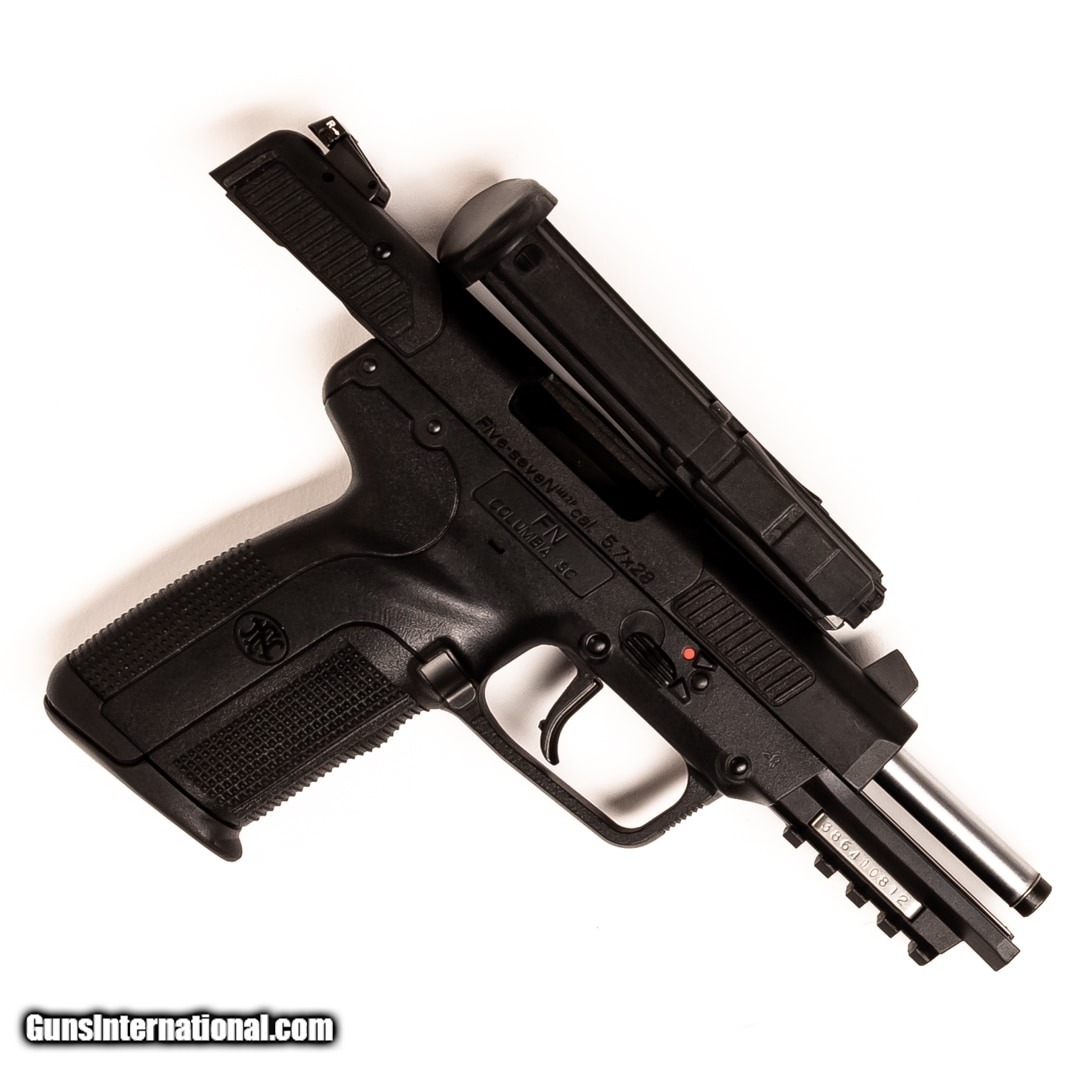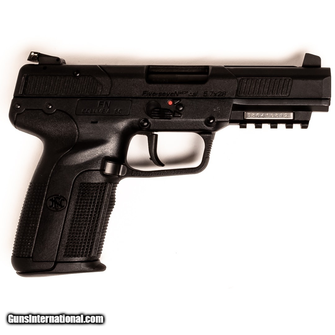 Description: Guns Listing ID: 635752 The FNH Five-seveN is a semi-auto handgun named for the caliber in which it is chambered — 5.7x28mm. Suitable for concealed carry and home defense, the delayed blowback action aids in reduced recoil. It offers predominately polymer construction, as well as a concealed hammer and special safety to prevent firing without a magazine. An integral rail makes for easy mounting of accessories. This Five-SeveN includes two 20-round magazines. SOLD Manufacturer: FNH Model: FIVE-SEVEN Caliber Info: 5.7X28MM Condition: Used - Certified Barrels: 4.8 barrel Finish: BLACK |