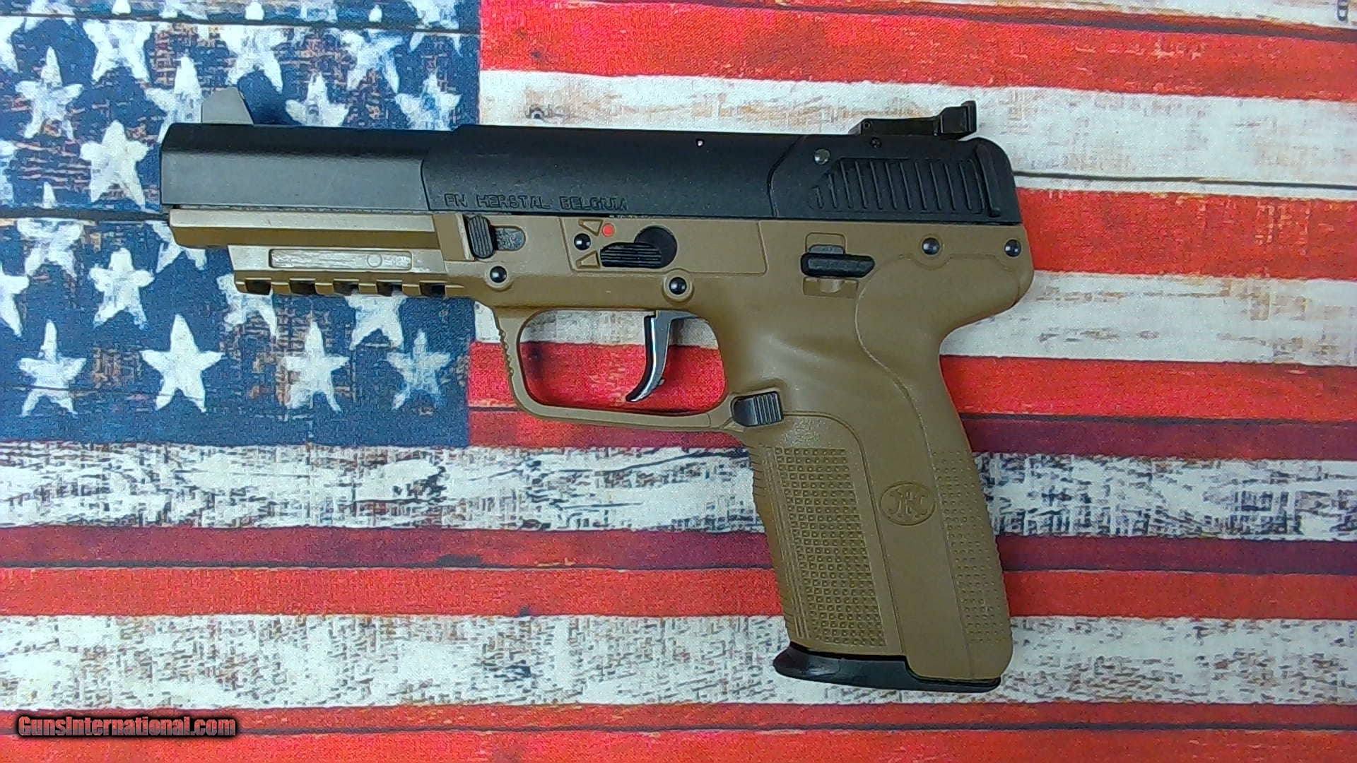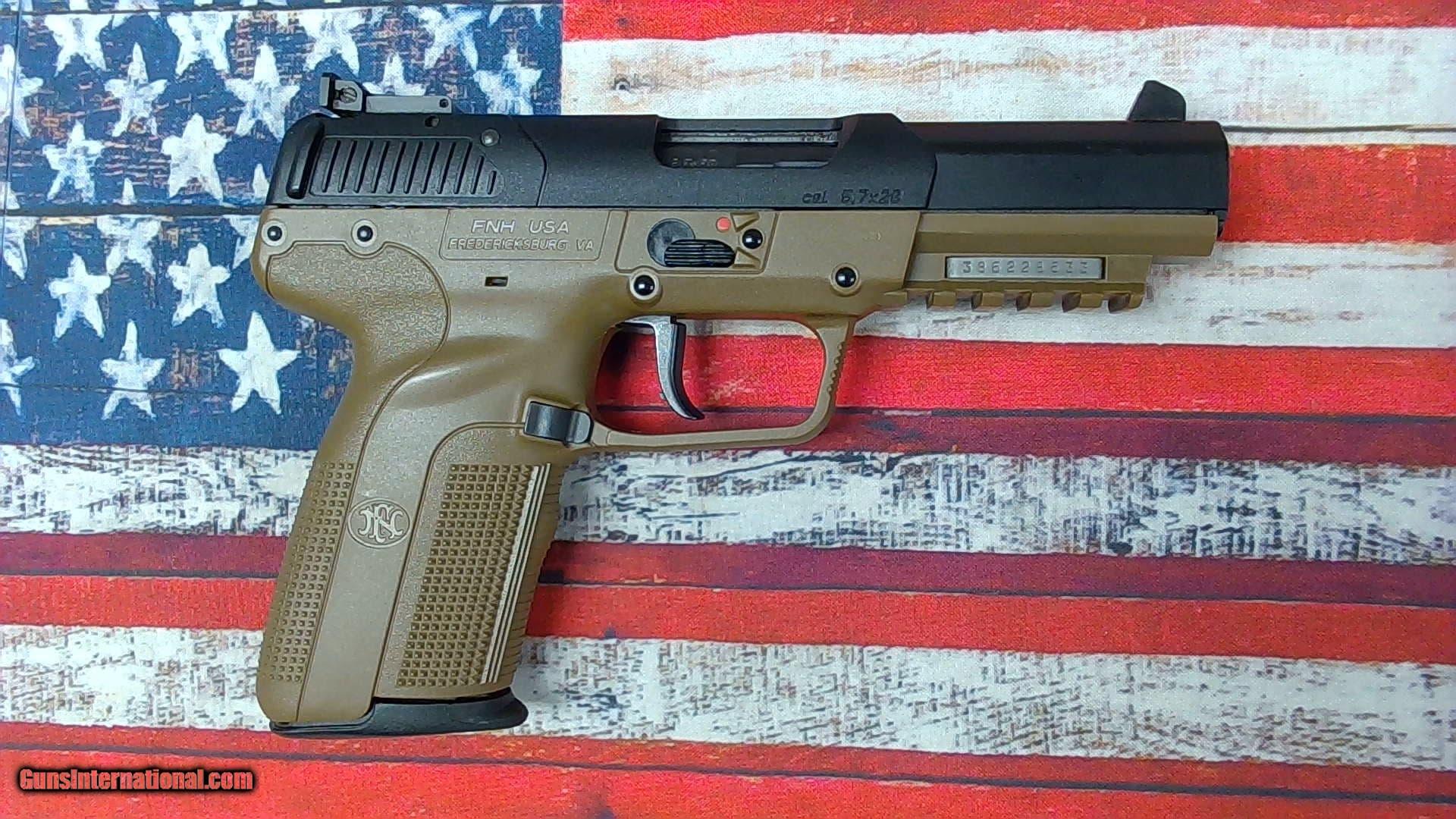 Description: Guns Listing ID: 692957 Very good condition FDE with Black slide. The FN Five seveN offers reliable performance in a durable and compact handgun design. It comes chambered in 5.7x28mm with a 4.8 inch barrel. Features include adjustable sights, an ambidextrous safety, and three 20 round magazines. SOLD Manufacturer: FNH Model: FIVE SEVEN Caliber Info: 5.7 X 28MM Condition: Used - Non-Certified Barrels: 4.8 BARREL Finish: FDE/BLACK |