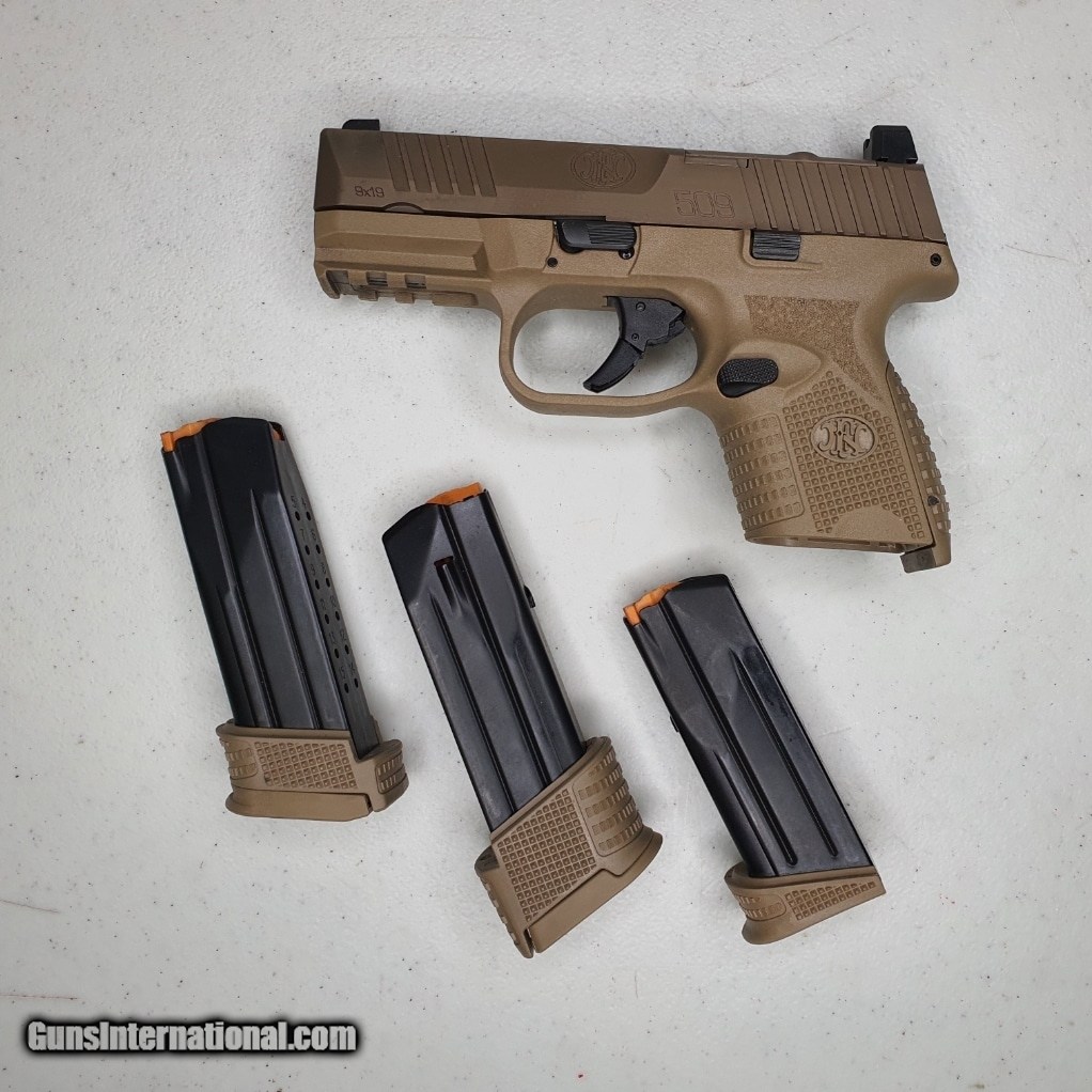 Description: Guns Listing ID: 575487 FNH FN 509C - 9MM - 16 ROUNDS - 3.7 \" Includes 3 magazines, 1 - 16 rounds, 1 - 12rounds, 1- 14 rounds. Also includes hard Apache case. Guns is clean, very little wear. Light scratches and wear to barrel of gun. See photos for more details. Fast shipping. SKU: fcn001297 KCD SOLD Manufacturer: FNH Model: FN 509C Caliber Info: 9MM Condition: Used - Non-Certified Barrels: 3.7 BARREL Finish: FDE |