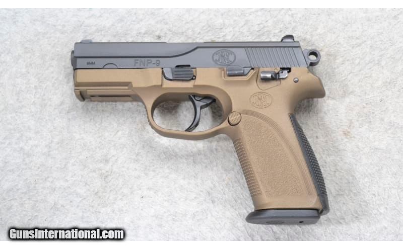 Description: This FNH Model FNP-9 is a DA/SA right hand semi-auto pistol in 9mm Cal. It has a 4 inch barrel with a rear serrated slide. A blade front sight and notch rear sight with white sight dots. The grip is a textured FDE polymer with a changeable backstrap. It has a lower accessory rail. 9mm Parabellum SOLD Chambers: 10 round magazine. Metal Condition: Excellent. Bore Condition: Excellent. Barrels: 4 inch barrel with a rear serrated slide. Triggers: DA/SA Weight: 26 oz. Sights: Blade front. Notch rear. White sight dots. Item Location: Richfield, WI |