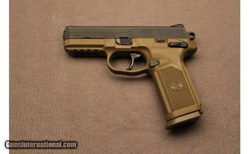 Description: This FNH FNX-45 is in excellent condition. This pistol is chambered in .45 Auto and comes with the box and 4 magazines. This pistol features a flat dark earth frame and standard 3 white dot style sights. SOLD Caliber Info: .45 Auto. Chambers: Semi-Auto. Metal Condition: Excellent condition, no signs of wear. Bore Condition: Excellent, bright and shiny. Barrels: 4 1/2 Inch barrel. Triggers: Single action/ double action. Stock: Polymer frame with textured grips. Weight: 2 Pounds 4 ounces. Sights: 3 White dot. Extras: Comes with box and 4 magazines. Item Location: East Grand Forks, MN |