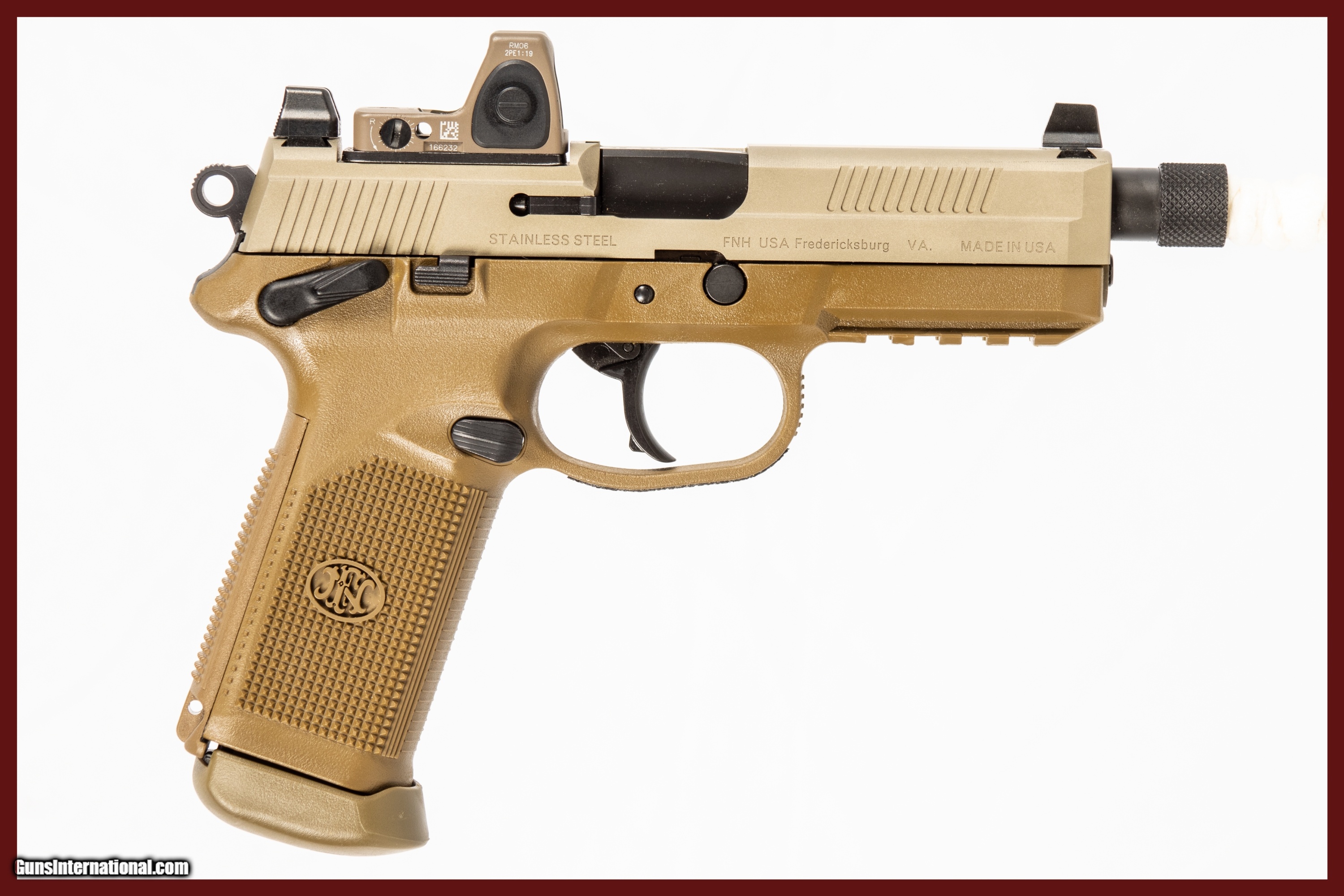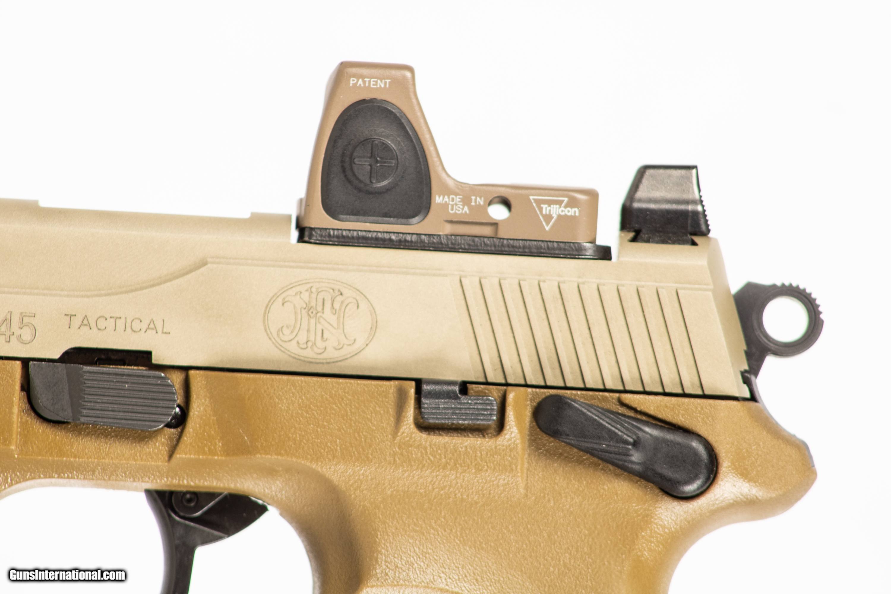 FNH FNX-45 Tactical FDE chambered in 45 ACP with a 5 1/4 inch barrel bright & shiny bore RMR case and 2 extra magazines. This firearm is in excellent condition and is covered by Dury's Lifetime Warranty.