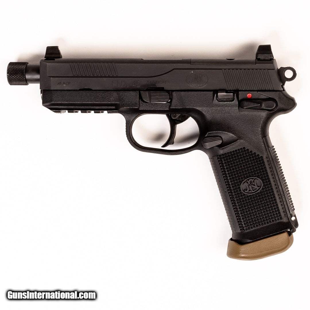 Description: Guns Listing ID: 528165 For sale is this FN FNX-45 Tactical, a semi-automatic handgun chambered in 45 ACP. It was designed for combat operations and will work well for self-defense, home defense, and duty use. This FNX-45 Tactical includes the original soft case, owner‚‚s manual, four 15-round magazines, backstraps, and optics plate SOLD Manufacturer: FNH Model: FNX-45 TACTICAL Caliber Info: .45 ACP Condition: Used - Certified Barrels: 5.3 BARREL Finish: BLACK |