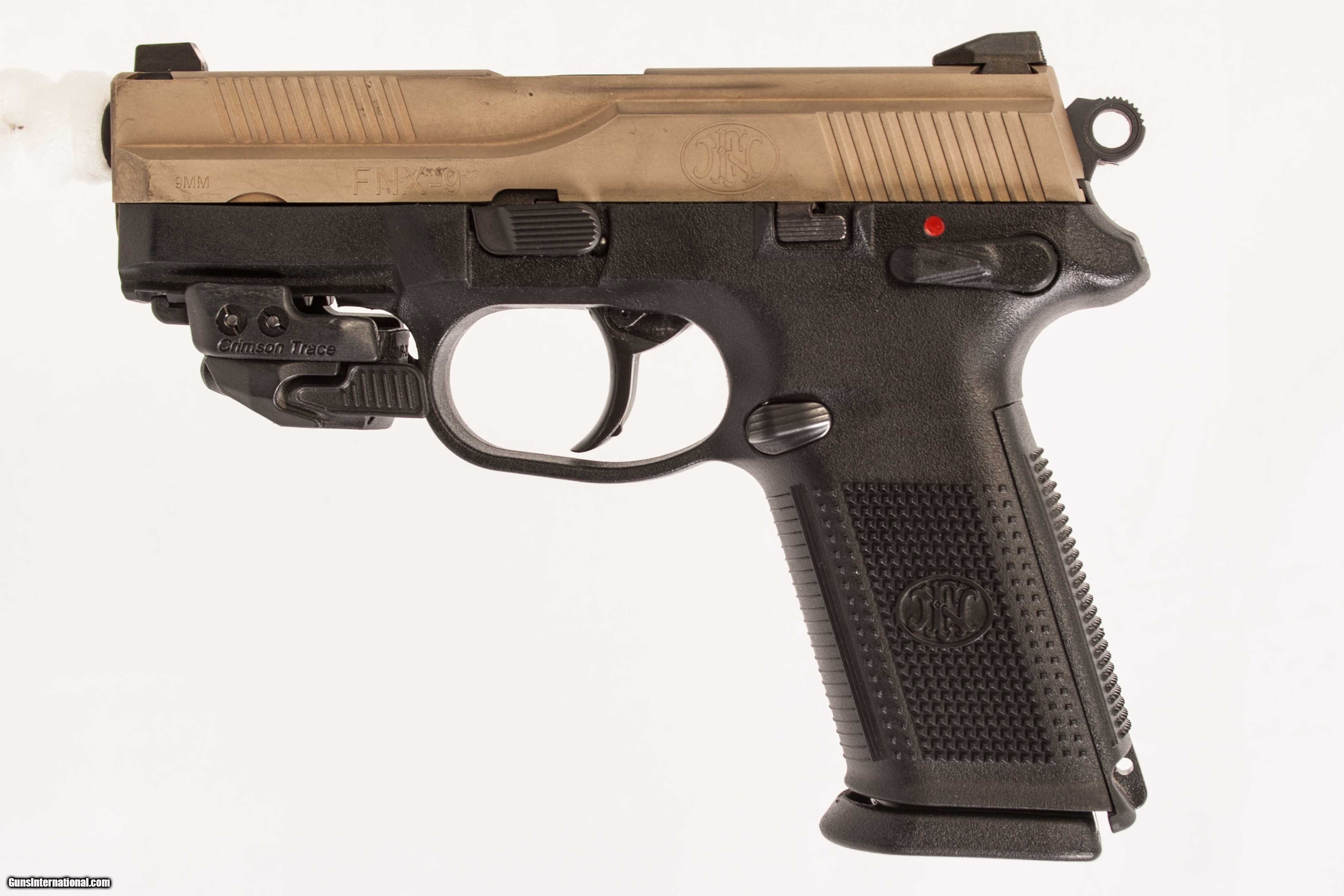 Description: FNH FNX9 chambered in 9mm with a 4 inch barrel with a bright bore good grooves original box and Cirmson Trace rail mounted green laser. This gun is in excellent condition and is covered by Dury's Lifetime Warranty. WE BUY GUNS! NO COLLECTION TOO BIG OR SMALL FOR OUR GUNS INTERNATIONAL CUSTOMERS ALL OF OUR FIREARMS CAN BE PURCHASED DIRECTLY FROM OUR DURY'S GUNS WEB-SITE DISCLAIMER: Some firearms can be sold on our sales floor before they are removed from web. SOLD Manufacturer: FNH USA Model: FNX9 Caliber Info: 9mm Barrels: 4 inch |