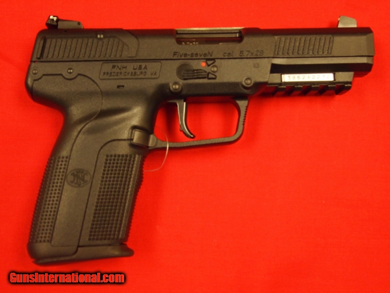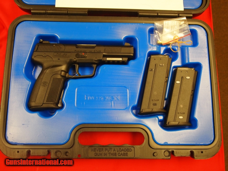 Description: FNH USA Five-seveN 5.7X28mm and has an impressive 20+1 capacity. Originally developed for military and law-enforcement tactical applications it offers a high-velocity, medium range, penetrating round in a lightweight, low-recoiling handgun. all black with adjustable rear sight/high-profile front blade sight. Weighing up to 30% less thatn comparably sized 9mm pistols, the Five-seveN is engineered for minimal muzzle jump. Rugged polymer construction with an intergrated tactical rail for accessories. Ambidextrous manual safety. Three 20-round magazines included. Lock and factory hardcases. Like New. Add 3% for credit cards $25.00 S&H SOLD |