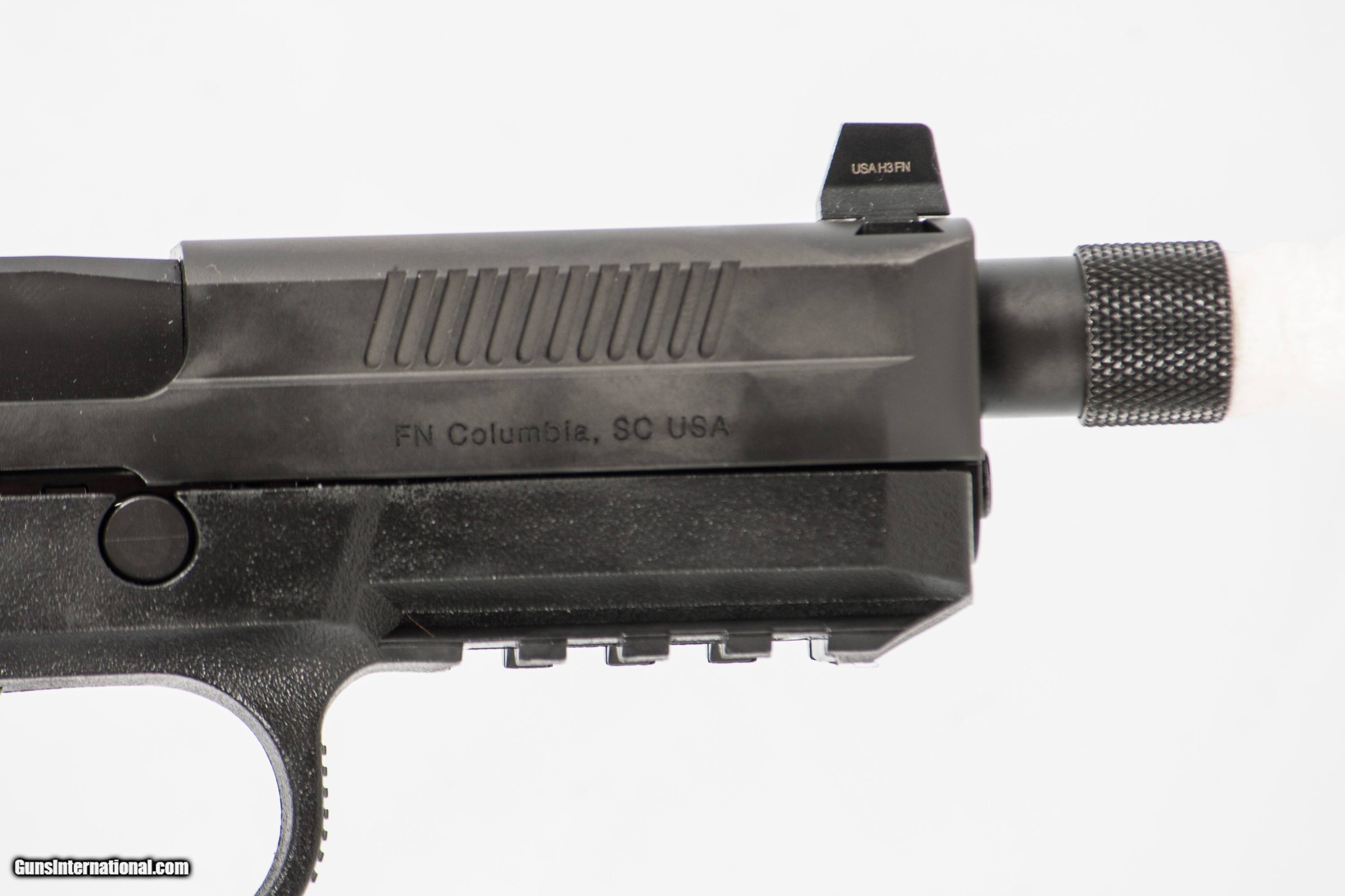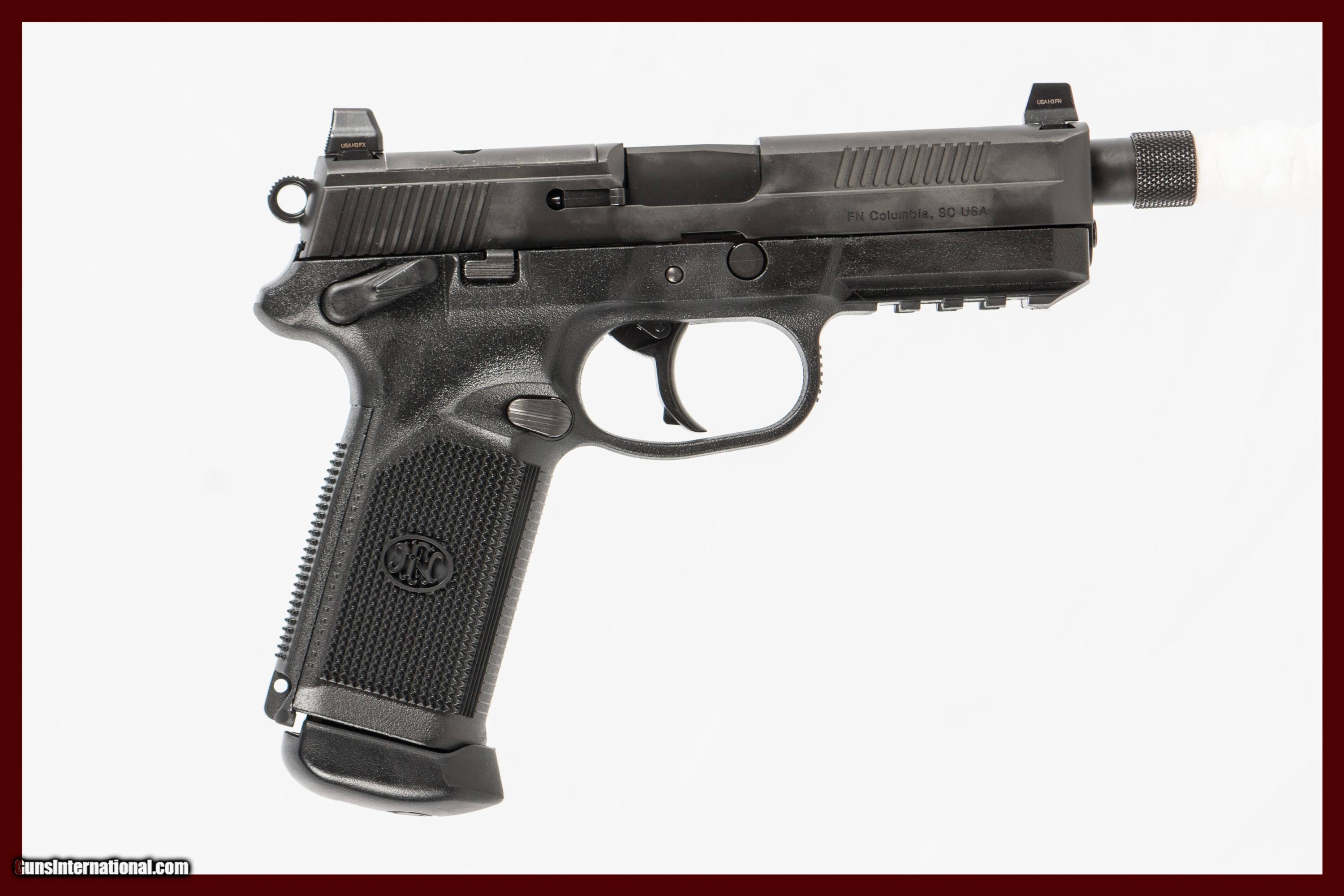 FNH USA model FNX-45 Tactical chambered in 45 ACP with a 5 1/4 inch barrel bright & shiny bore optic ready slide ambidextrous controls extra magazine and case. This gun is in new in box excellent condition and is covered by Dury's Lifetime Warranty.