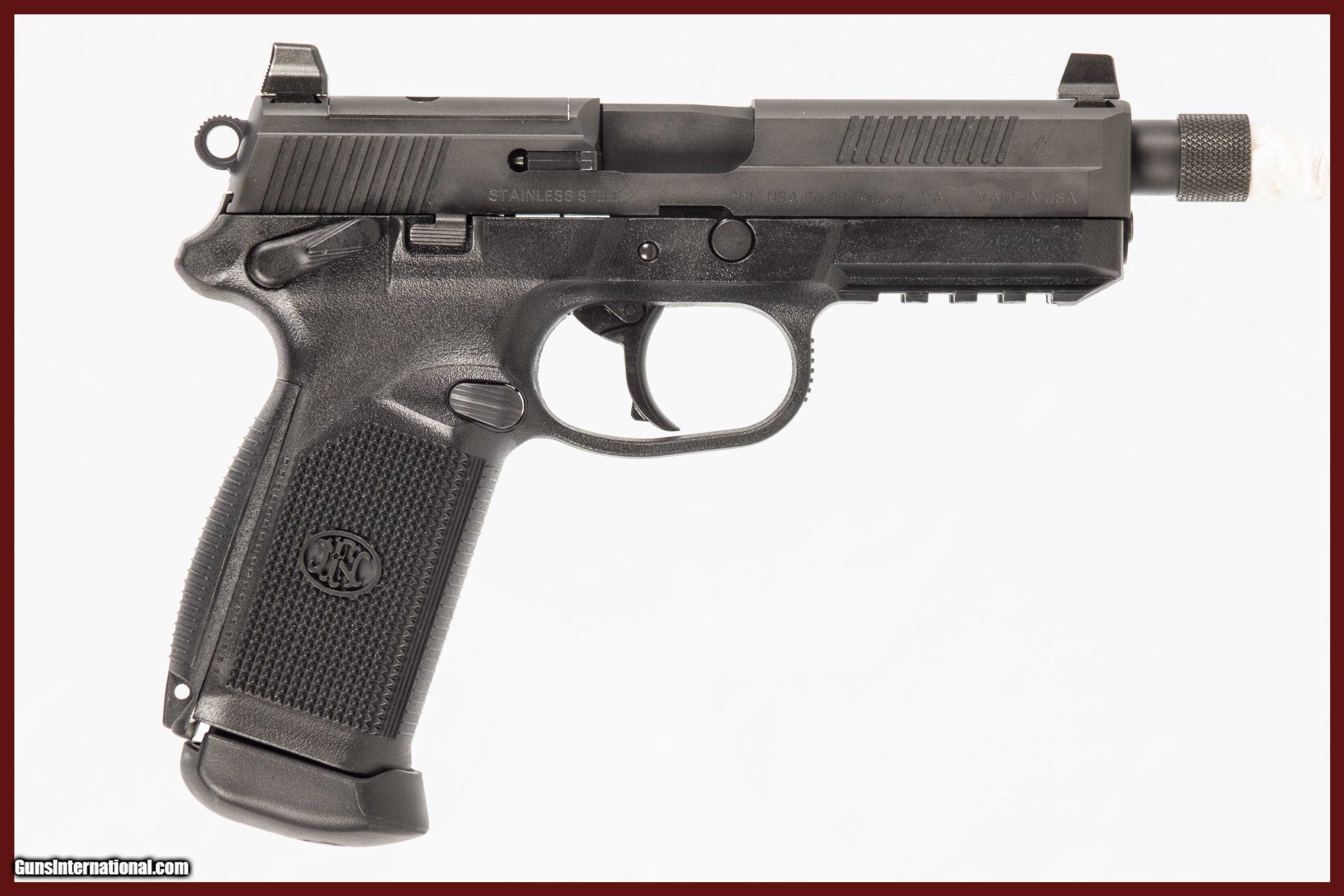 FNH USA FNX-45 Tactical chambered in 45 ACP with a 5 1/4 inch barrel bright & shiny bore soft case 2 extra magazines and backstraps. This gun is in excellent condition and is covered by Dury's Lifetime Warranty.