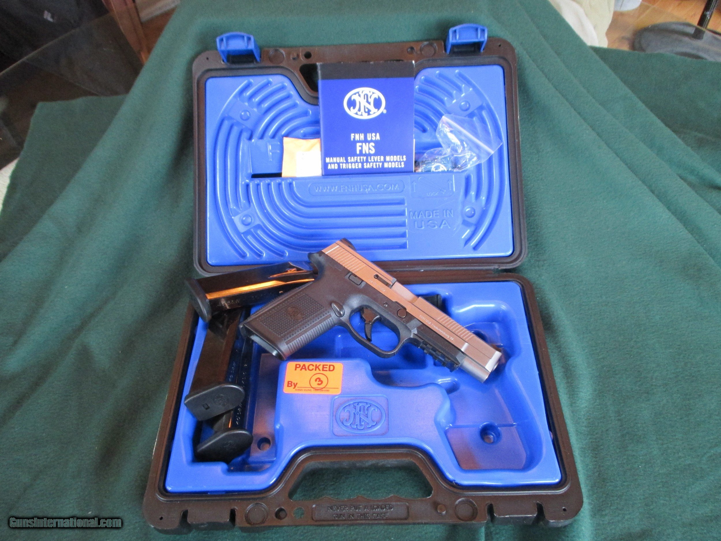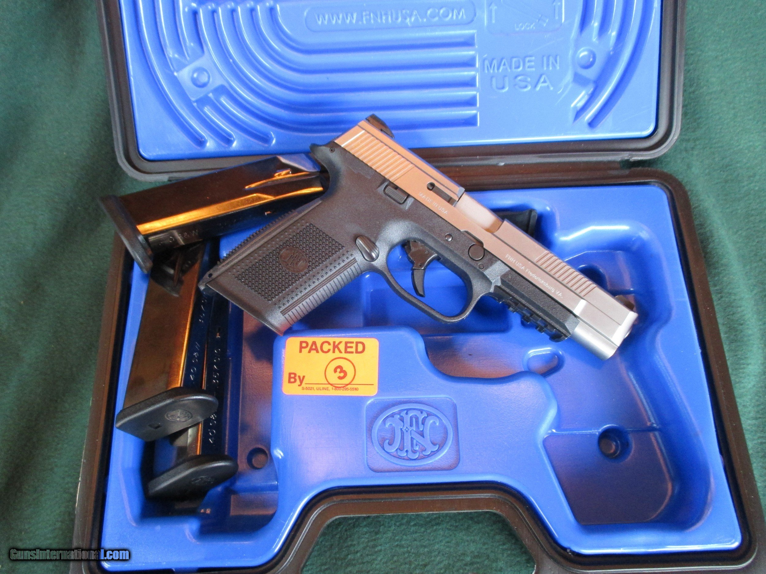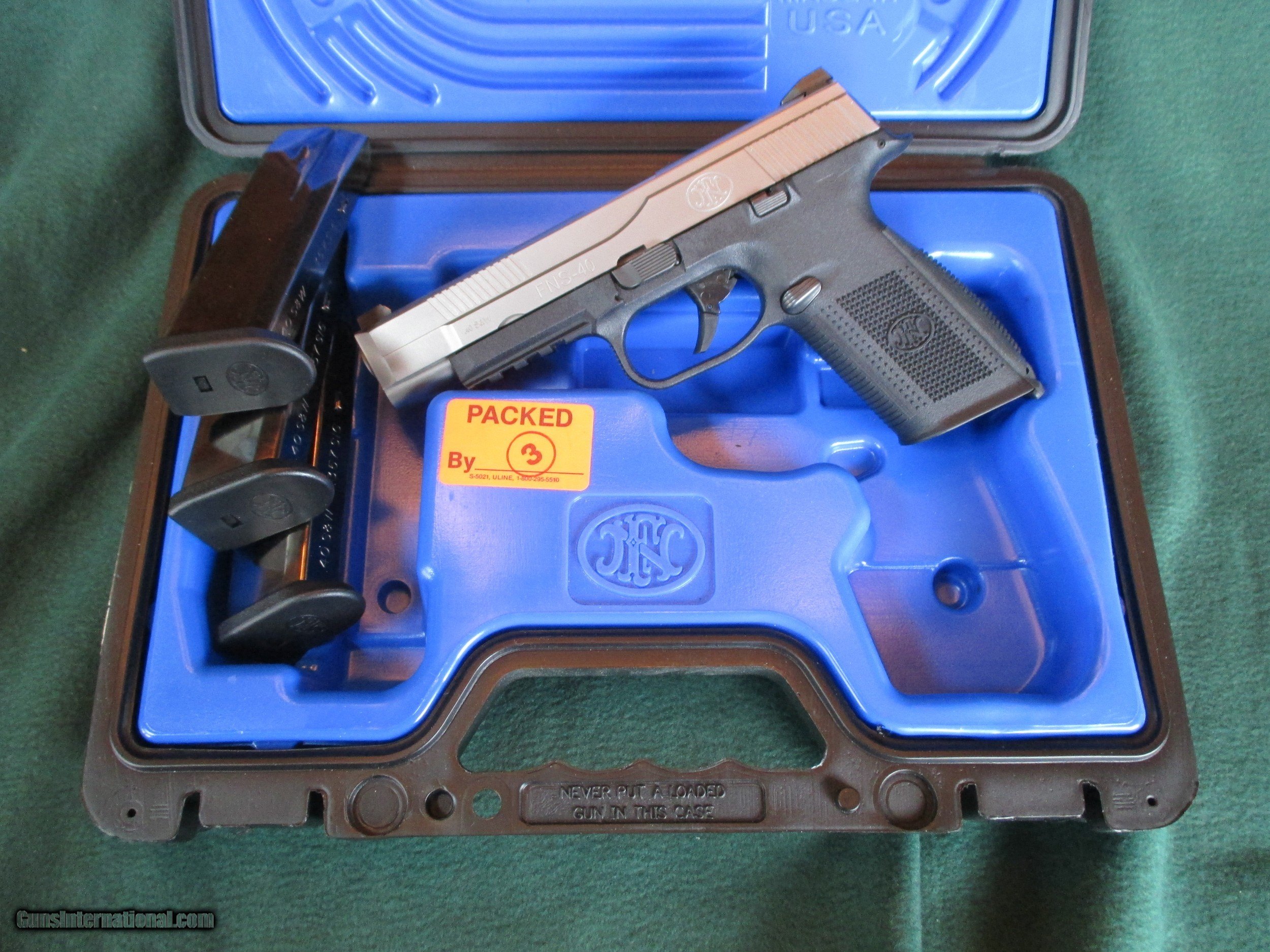 Description: FNS 40 S&W 5 inch stainless. It's been fired less than one box. no night sights, three factory mags, box, papers. Stallion Firearms 810-922-4279. Shipping $25. to your brick and mortar FFL dealer. Postal Money order within one week plus a copy of the FFL license that you will use. It can be emailed to Stallionfirearms. SOLD |