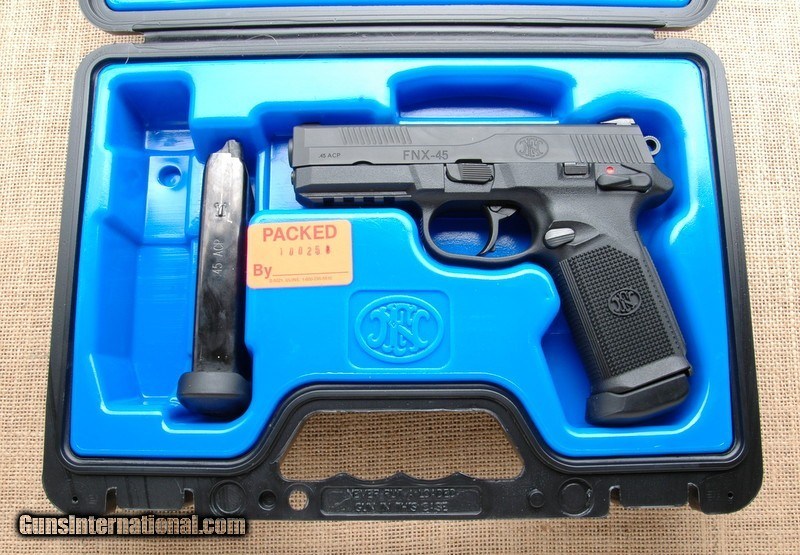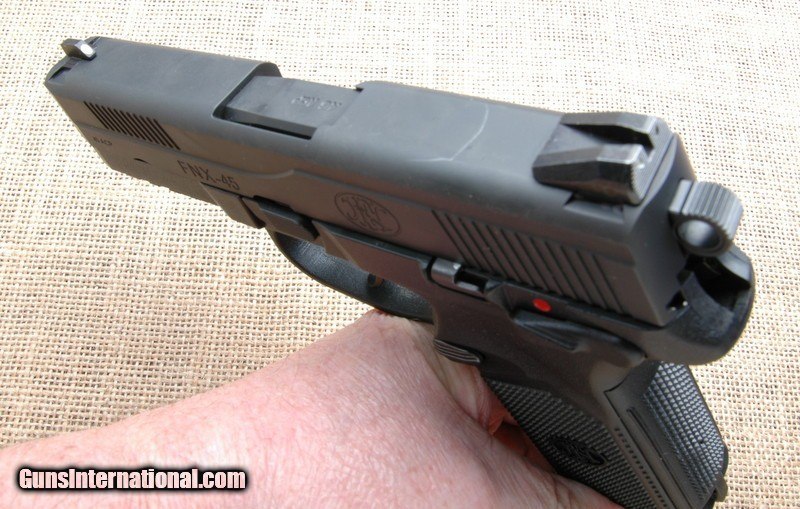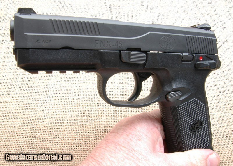 Description: Very good to excellent condition used FN FNX-45. Excellent bore, clean gun, a little high edge wear and a couple of scuffs. Nothing you wouldn't get from carrying it in a holster for a couple of days, or going thru one dynamic pistol course. It comes in the factory box with all inserts and two 15 round magazines. $50 shipping to the lower 48, 3% surcharge for using a CC. If you choose to pay with a personal check, we will hold the item for up to 10 days to make sure that it clears. Please expedite such pymts as we will hold an item on your word for 5 days. SOLD Handgun Caliber: .45 ACP (.45 Auto) |