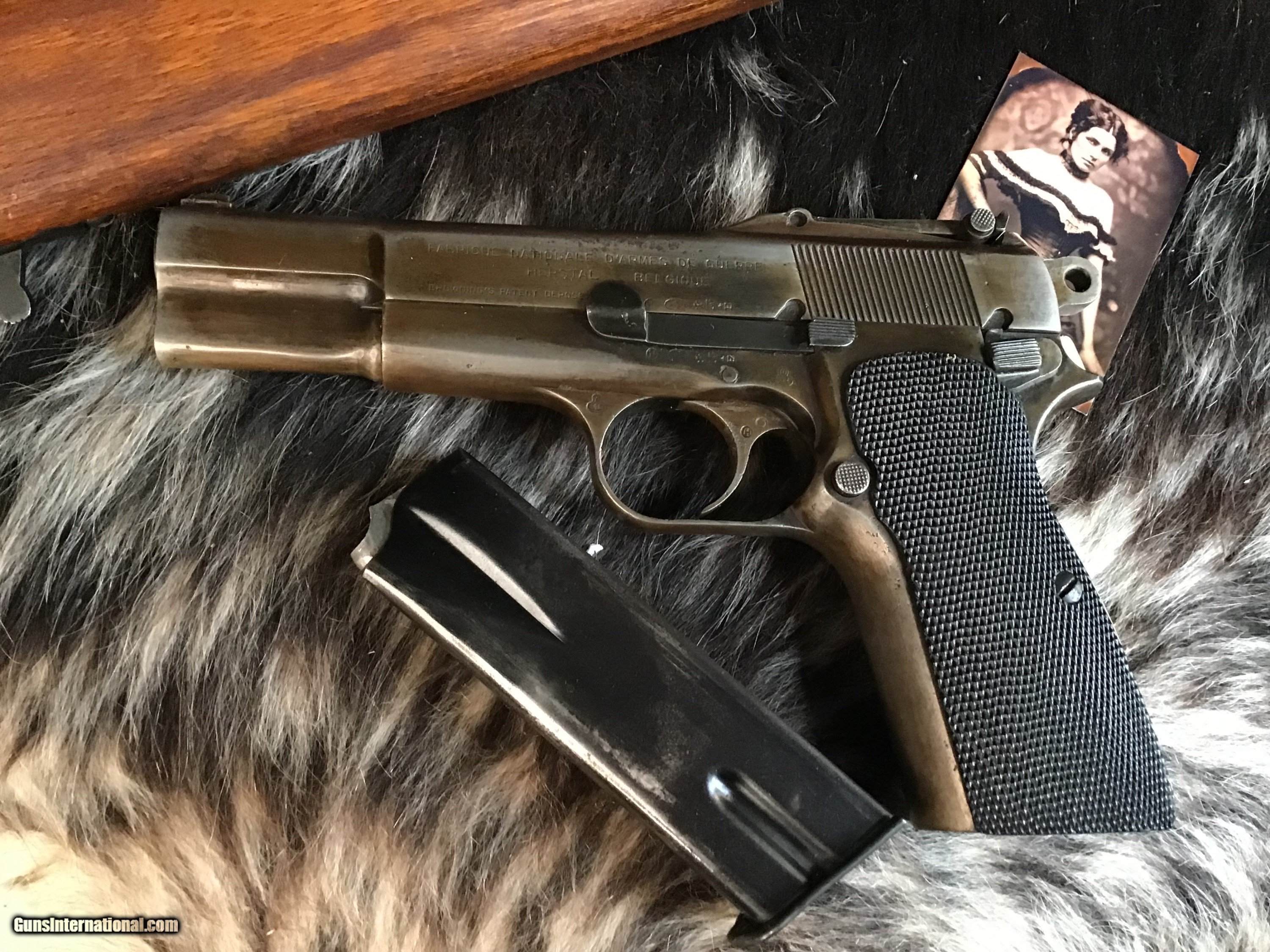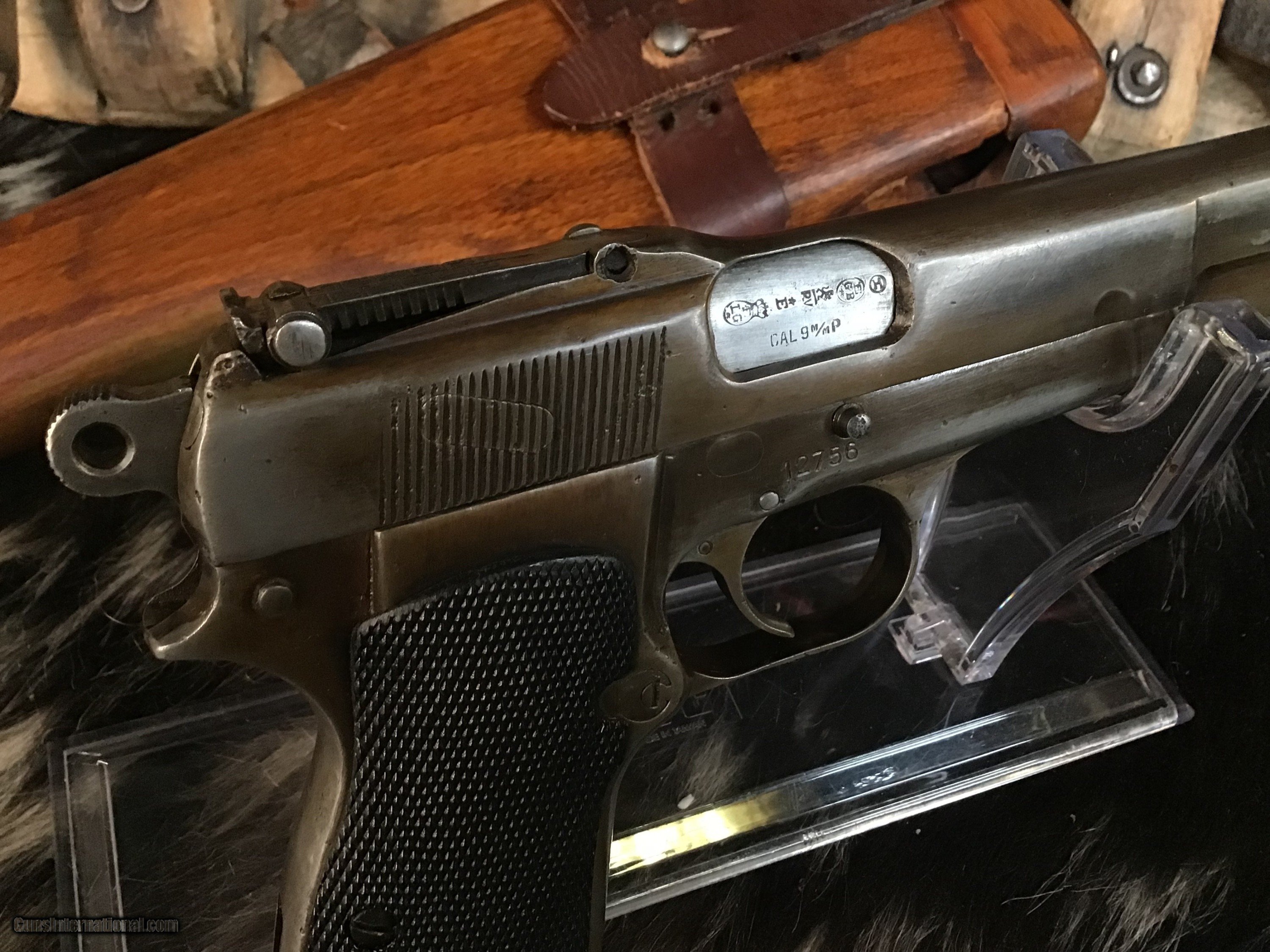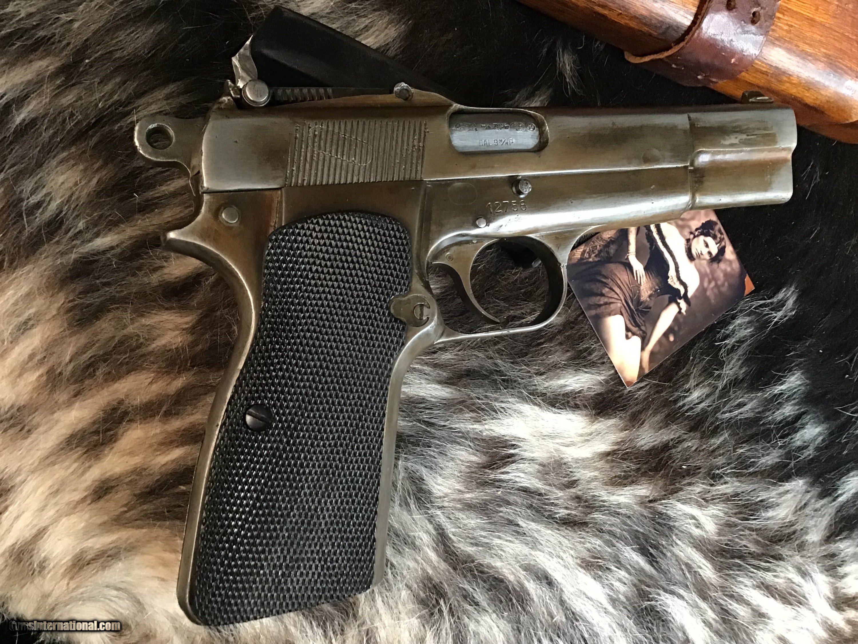 Description: 1936-37 Pre-War Belgian Browning Patent FN Hi-Power Pistol with wood Holster/Stock rig. Original Blued finish turned pleasing patina Silver toned with BHP 1935 Stamped Wood holster stock combo rig that attaches to slot in pistol rear grip strap for precision shots. Tangent sights graded to 500 meters. One double stack 13 round magazine. The Hi-Power is a John Moses Browning design that has been in almost constant production since release in 1935 to the present day. A great chance to own an honest early original with the holster/stock rig to enjoy in your investment arms collection. Add 3% if paying with credit card. Free shipping for all US Veterans as a small thank you. God Bless America from a proud American, and a Viet Nam Vet , thankful for our freedoms.. paid for by the Blood ,Sweat and Tears of our brave men and women in uniform. Ten Below Firearms is a Veteran owned and operated business. We specialize in out of production models of high quality firearms. (I prefer to be called a Collector because it sounds a lot nicer then a Hoarder.) We love to ship! We ship to all states where legal, just give us a call! Handguns normally ship for $35 and Long guns for $50 and up for extra length long guns. That's 2-3 day USPS Priority shipping, Delivery conformation and with tracking number. Optional Postal insurance is additional $1.85 per $100 and highly recommended. * If you live in Minnesota and want to drive to see a gun, reach out to me to discuss making an appointment – ALL GUNS ARE LEGALLY TRANSFERRED – there are NO EXCEPTIONS. All payments sent via USPS Priority mail must be received within FIVE DAYS of date of purchase or item will be relisted for sale. **PROPS MAY BE USED FOR PHOTOS, PROPS ARE NOT INCLUDED WITH THE SALE OF THIS FIREARM** Thank you! Please call the store to complete your purchase : 651-303-7769 Layaway:If needed we offer a 60 day layaway program. We offer FREE 60-day layaway. Buyer must pay at least 1/3 down, 1/3 Due in thirty days and the final balance due in sixty days. On all uncompleted layaways, all payments made will be non-refundable. The 60 days begins the day the buyer commits to buying the gun. 90 day layaway is available with 1/2 down, via phone. All layaway sales are final. Layaway is not available on negotiated prices. Please Check us out at tenbelowfirearms And Please Send An Email or Call If We Can Assist in SELLING OR BUYING Your Collection. Friendly honest service, Fair Pricing, and top prices paid out for your interesting firearms. We also will take classic cars and trucks on trade. We also will take Gold & Silver on trade. RETURN POLICY:. All firearms EXCEPT ANTIQUE FIREARMS come with a 3-day NON-FIRING, NON-MESSING-WITH (REMOVING PARTS, MOUNTING OPTICS, CLEANING, DETAIL STRIPPING) inspection / return privilege to cover any issue that was NOT noted in the written description -OR- shown in the photos of the item . Inspection is based on a visual review of the gun to confirm the gun is in the condition stated. The inspection period begins at time of delivery to your dealer. It is your responsibility to inspect the gun in this time frame and inform Ten Below Firearms by phone or e-mail, of any such issue. You MUST get ahold of us before just returning a firearm. In the case of a return, buyer pays all shipping. Please ask any questions you may have prior to purchasing one of our firearms for sale listings. Antique guns are sold as/is and are in no means under any warranty or guarantee to function. Return policy only applies to used firearms. It is always prudent for ALL guns to be checked by a qualified gunsmith before attempting to fire. Once the gun has been transferred on a 4473 there WILL BE NO RETURNS, PERIOD. All Antique firearms are sold as collector’s items only and are under no circumstances warrantied as to shooting safety, function or accuracy. The purchaser is solely liable / responsible for determining that a gun is safe to shoot. Most of The firearms offered in our listings have not been test fired, but have been given a visual inspection only for firearm sale description purposes. It is our recommendation, should you choose to shoot an antique firearm purchased from us, have it thoroughly inspected by a qualified gunsmith before firing. By purchasing the purchaser agrees to hold the seller harmless against damage, injury, or death caused by defective merchandise or actions that are the fault or error of the purchaser. SOLD Curio/Relic: Yes Handgun Caliber: 9x19mm Parabellum (9mm Luger, 9x19mm NATO) Manufacturer: FN Belgium Model: Hi-Power Serial Number: 12755 Barrel Length: 4.65” Condition: Very good Metal Condition: Good Wood Condition: Good Bore Condition: Good Action: Semi-Auto Triggers: SA Stock: Walnut Finish: Patina/Blued Sights: Tangent Adjustable Manufacture Date: 1936-37 Extras: Holster/Stock Item Location: MN |
