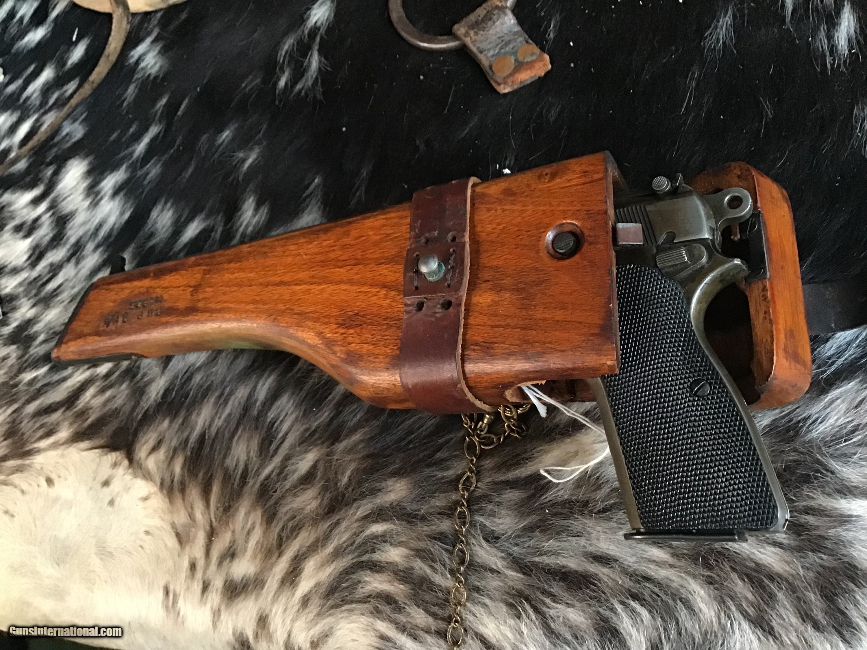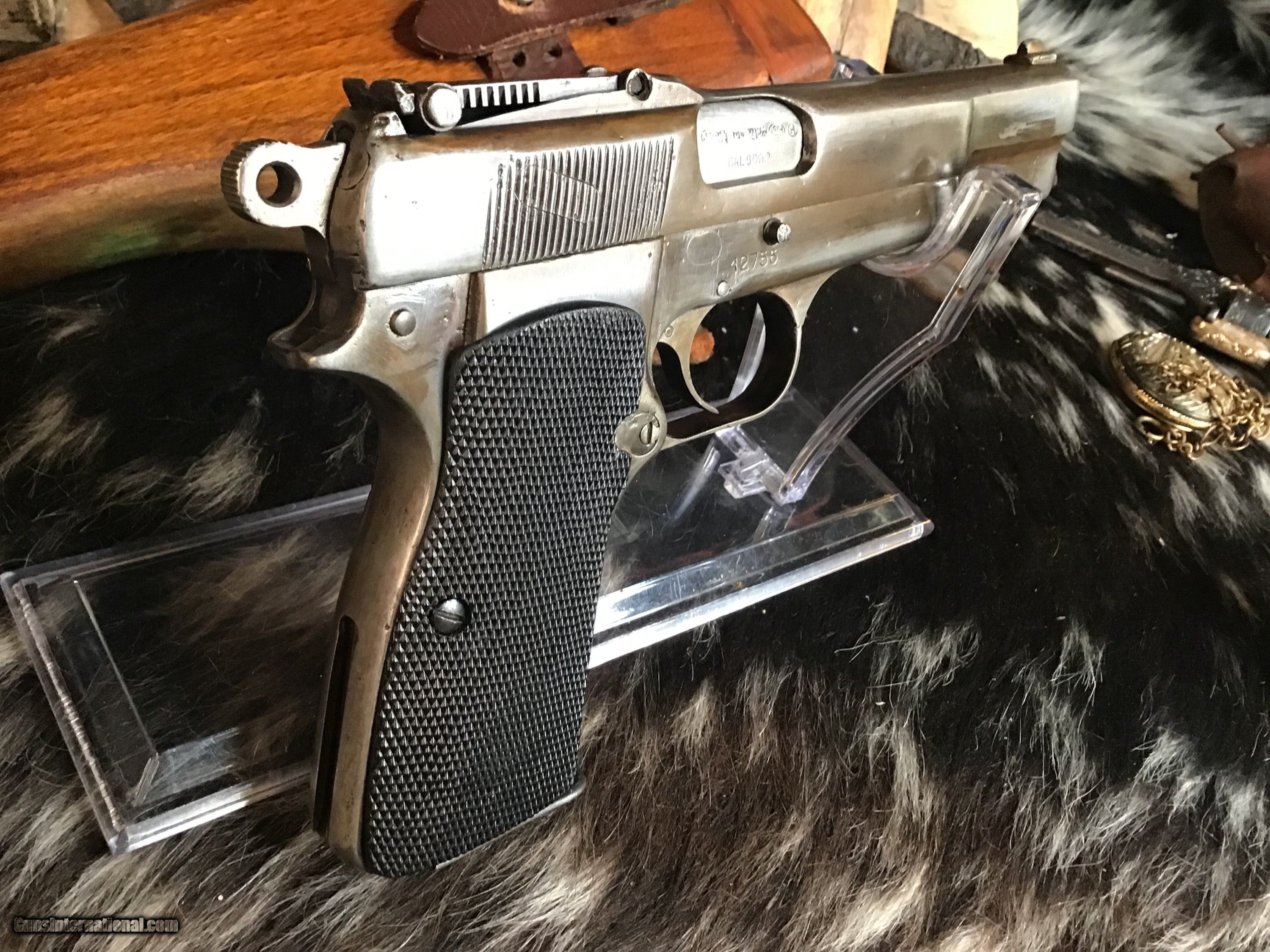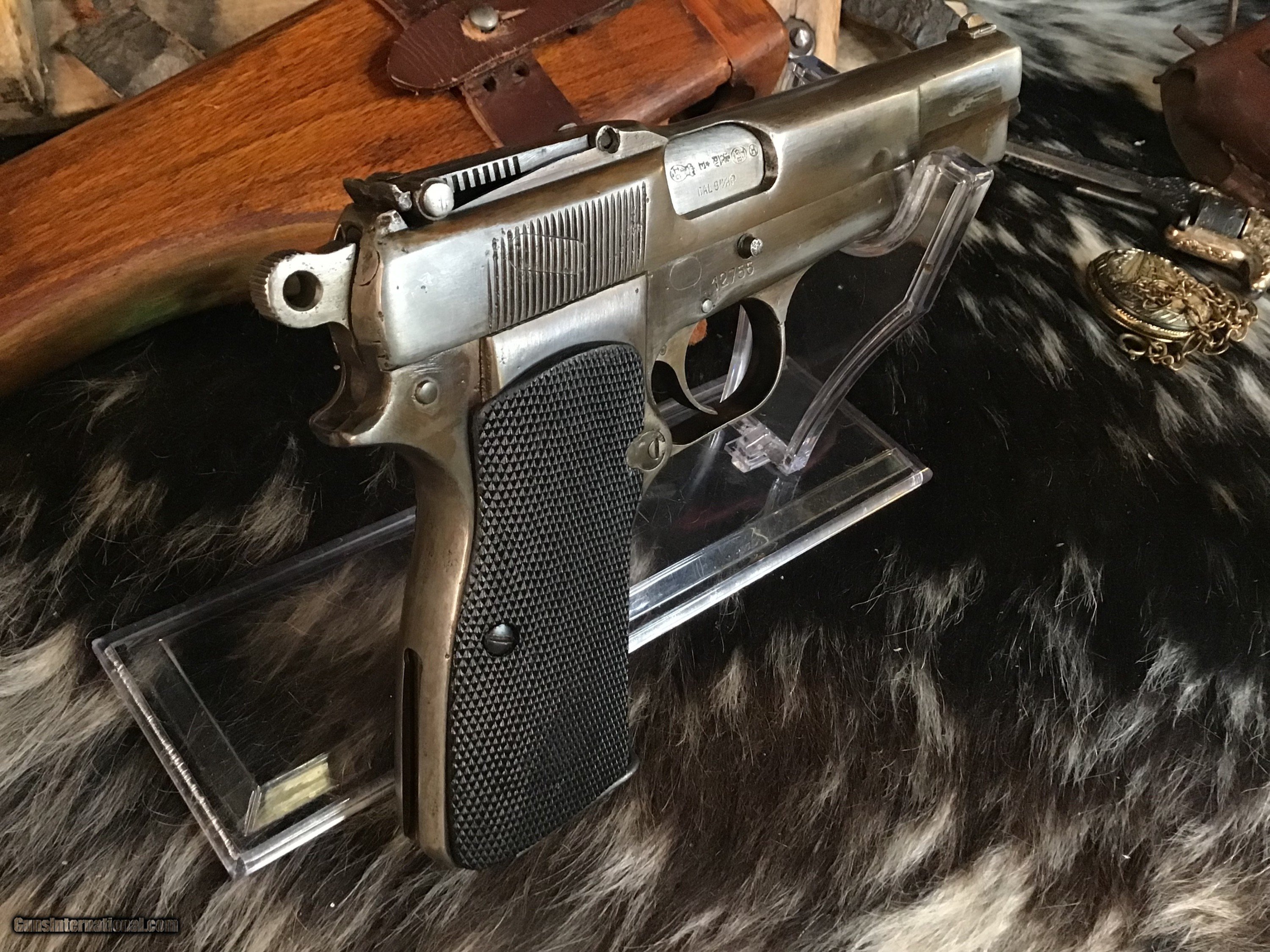 Description: 1936-37 Pre-War Belgian Browning Patent FN Hi-Power Pistol with wood Holster/Stock rig. Original Blued finish turned pleasing patina Silver toned with BHP 1935 Stamped Wood holster stock combo rig that attaches to slot in pistol rear grip strap for precision shots. Tangent sights graded to 500 meters. One double stack 13 round magazine. The Hi-Power is a John Moses Browning design that has been in almost constant production since release in 1935 to the present day. A great chance to own an honest early original with the holster/stock rig to enjoy in your investment arms collection. Add 3% if paying with credit card. Free shipping for all US Veterans as a small thank you. God Bless America from a proud American, and a Viet Nam Vet , thankful for our freedoms.. paid for by the Blood ,Sweat and Tears of our brave men and women in uniform. Ten Below Firearms is a Veteran owned and operated business. We specialize in out of production models of high quality firearms. (I prefer to be called a Collector because it sounds a lot nicer then a Hoarder.) We love to ship! We ship to all states where legal, just give us a call! Handguns normally ship for $35 and Long guns for $50 and up for extra length long guns. That's 2-3 day USPS Priority shipping, Delivery conformation and with tracking number. Optional Postal insurance is additional $1.85 per $100 and highly recommended. * If you live in Minnesota and want to drive to see a gun, reach out to me to discuss making an appointment – ALL GUNS ARE LEGALLY TRANSFERRED – there are NO EXCEPTIONS. All payments sent via USPS Priority mail must be received within FIVE DAYS of date of purchase or item will be relisted for sale. **PROPS MAY BE USED FOR PHOTOS, PROPS ARE NOT INCLUDED WITH THE SALE OF THIS FIREARM** Thank you! Please call the store to complete your purchase : 651-303-7769 Layaway:If needed we offer a 60 day layaway program. We offer FREE 60-day layaway. Buyer must pay at least 1/3 down, 1/3 Due in thirty days and the final balance due in sixty days. On all uncompleted layaways, all payments made will be non-refundable. The 60 days begins the day the buyer commits to buying the gun. 90 day layaway is available with 1/2 down, via phone. All layaway sales are final. Layaway is not available on negotiated prices. Please Check us out at tenbelowfirearms And Please Send An Email or Call If We Can Assist in SELLING OR BUYING Your Collection. Friendly honest service, Fair Pricing, and top prices paid out for your interesting firearms. We also will take classic cars and trucks on trade. We also will take Gold & Silver on trade. RETURN POLICY:. All firearms EXCEPT ANTIQUE FIREARMS come with a 3-day NON-FIRING, NON-MESSING-WITH (REMOVING PARTS, MOUNTING OPTICS, CLEANING, DETAIL STRIPPING) inspection / return privilege to cover any issue that was NOT noted in the written description -OR- shown in the photos of the item . Inspection is based on a visual review of the gun to confirm the gun is in the condition stated. The inspection period begins at time of delivery to your dealer. It is your responsibility to inspect the gun in this time frame and inform Ten Below Firearms by phone or e-mail, of any such issue. You MUST get ahold of us before just returning a firearm. In the case of a return, buyer pays all shipping. Please ask any questions you may have prior to purchasing one of our firearms for sale listings. Antique guns are sold as/is and are in no means under any warranty or guarantee to function. Return policy only applies to used firearms. It is always prudent for ALL guns to be checked by a qualified gunsmith before attempting to fire. Once the gun has been transferred on a 4473 there WILL BE NO RETURNS, PERIOD. All Antique firearms are sold as collector’s items only and are under no circumstances warrantied as to shooting safety, function or accuracy. The purchaser is solely liable / responsible for determining that a gun is safe to shoot. Most of The firearms offered in our listings have not been test fired, but have been given a visual inspection only for firearm sale description purposes. It is our recommendation, should you choose to shoot an antique firearm purchased from us, have it thoroughly inspected by a qualified gunsmith before firing. By purchasing the purchaser agrees to hold the seller harmless against damage, injury, or death caused by defective merchandise or actions that are the fault or error of the purchaser. SOLD Curio/Relic: Yes Handgun Caliber: 9x19mm Parabellum (9mm Luger, 9x19mm NATO) Manufacturer: FN Belgium Model: Hi-Power Serial Number: 12755 Barrel Length: 4.65” Condition: Very good Metal Condition: Good Wood Condition: Good Bore Condition: Good Action: Semi-Auto Triggers: SA Stock: Walnut Finish: Patina/Blued Sights: Tangent Adjustable Manufacture Date: 1936-37 Extras: Holster/Stock Item Location: MN |