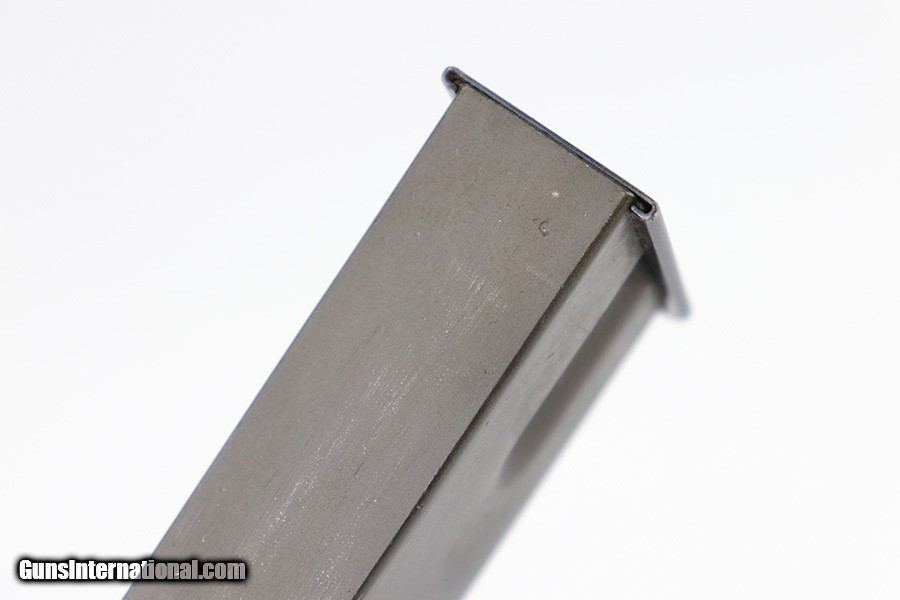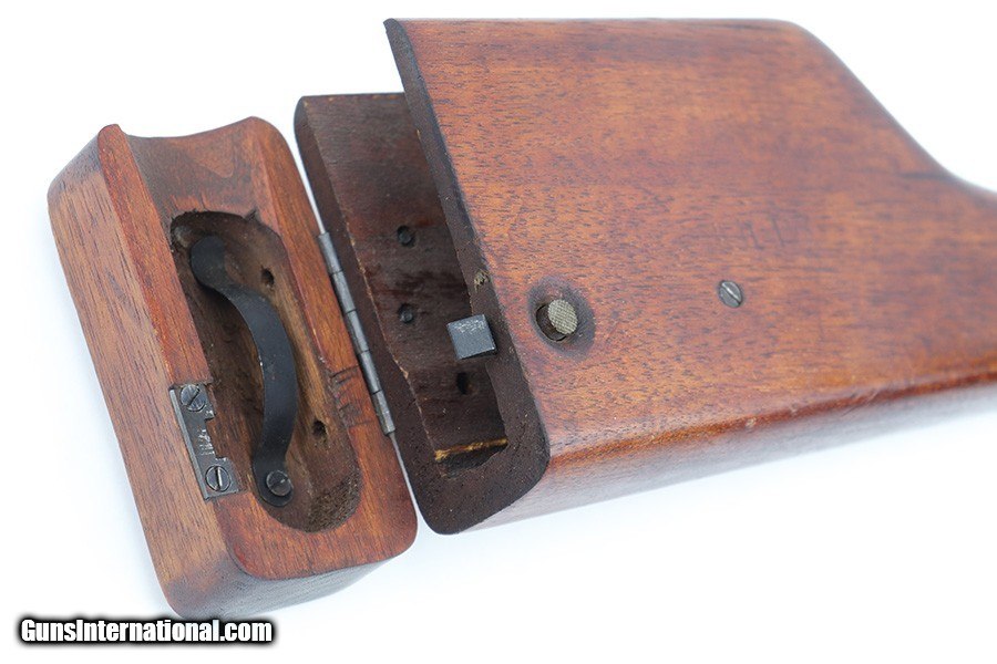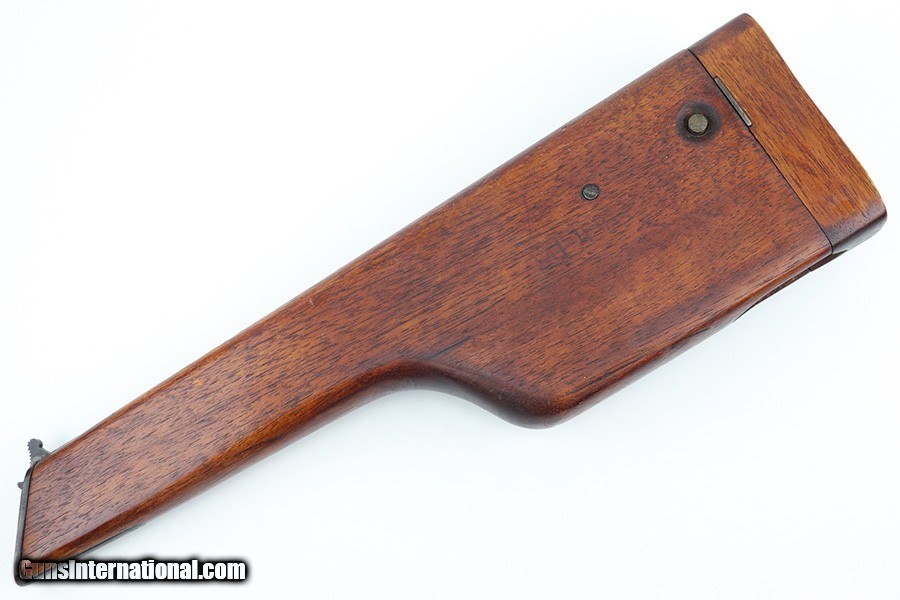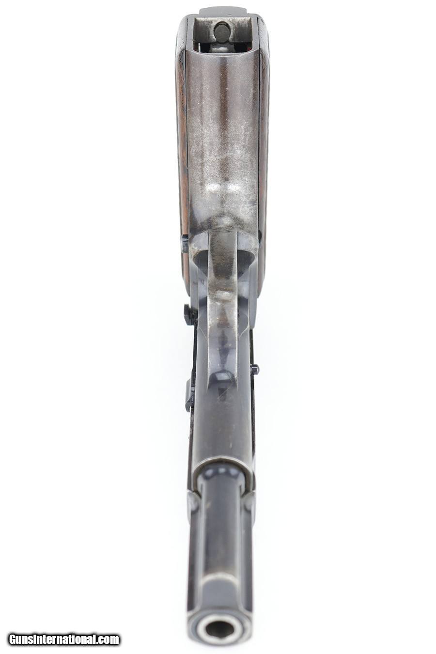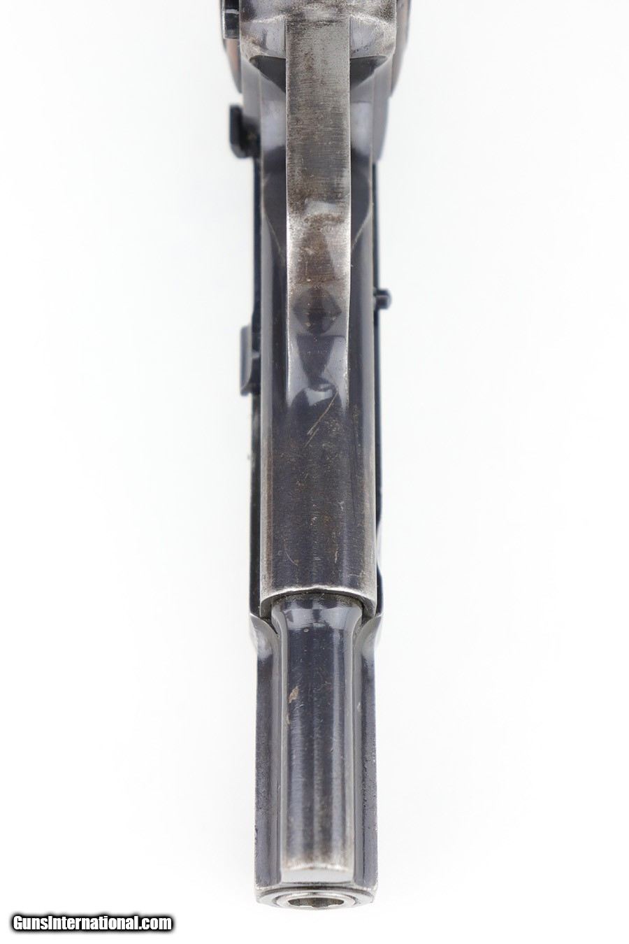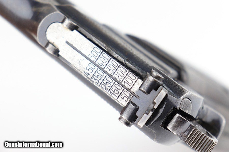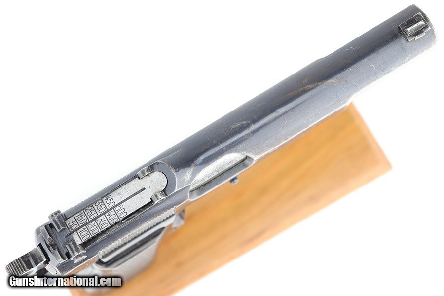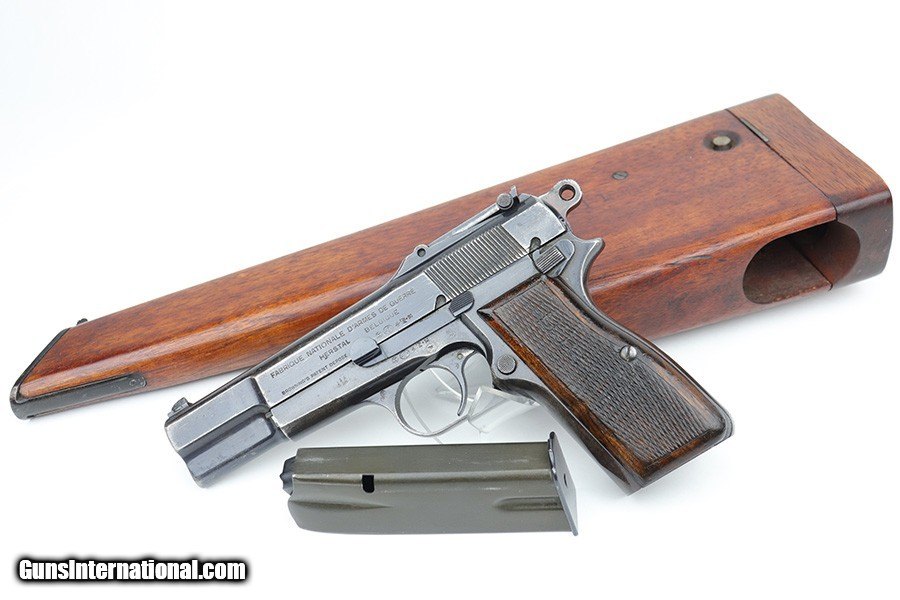 Description: This is a prewar FN Browning High Power with tangent rear sight, slotted frame and a stock/holster combo. The pistol is matching with original blue that rates at about 70%. There's finish loss on most of the high edges, and pronounced wear/patina on the front strap. Early Belgian proofs throughout, but oddly there is a '135 / WaA' stamp on the frame that we haven't seen before. It is presumably not a real waffenamt, but also a strange way to possibly fake one. Proper prewar grips with painted red backs. The grips don't have any cracks but it does appear some initials are scratched in the left panel. Bore has decent rifling but some frost and freckling throughout. The stock holster is unmarked but has seemingly the same initials scratched in as the left grip does. It's otherwise unmarked, and the metal parts appear to be re-blued. SOLD Curio/Relic: Yes Handgun Caliber: 9x19mm Parabellum (9mm Luger, 9x19mm NATO) |