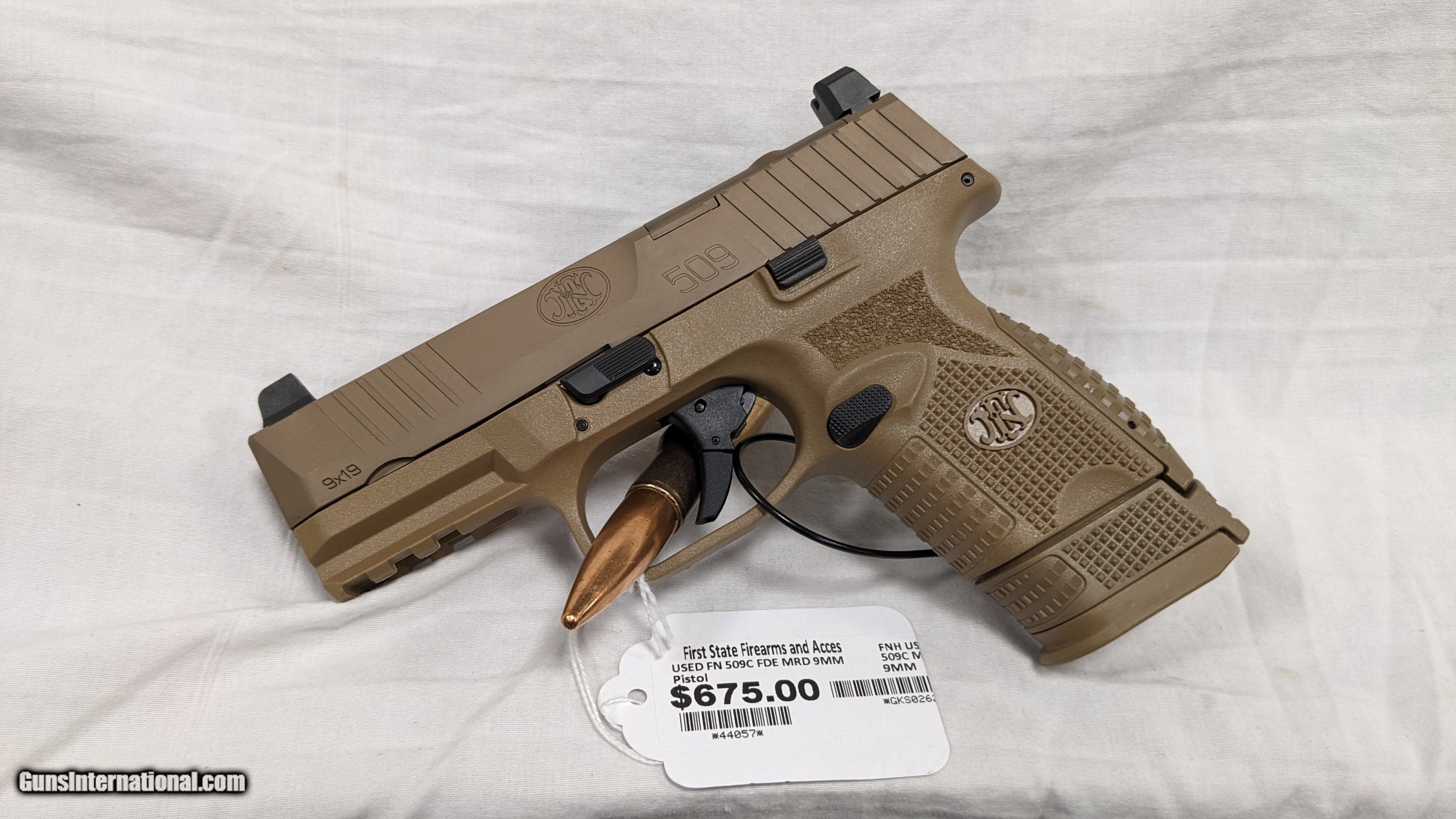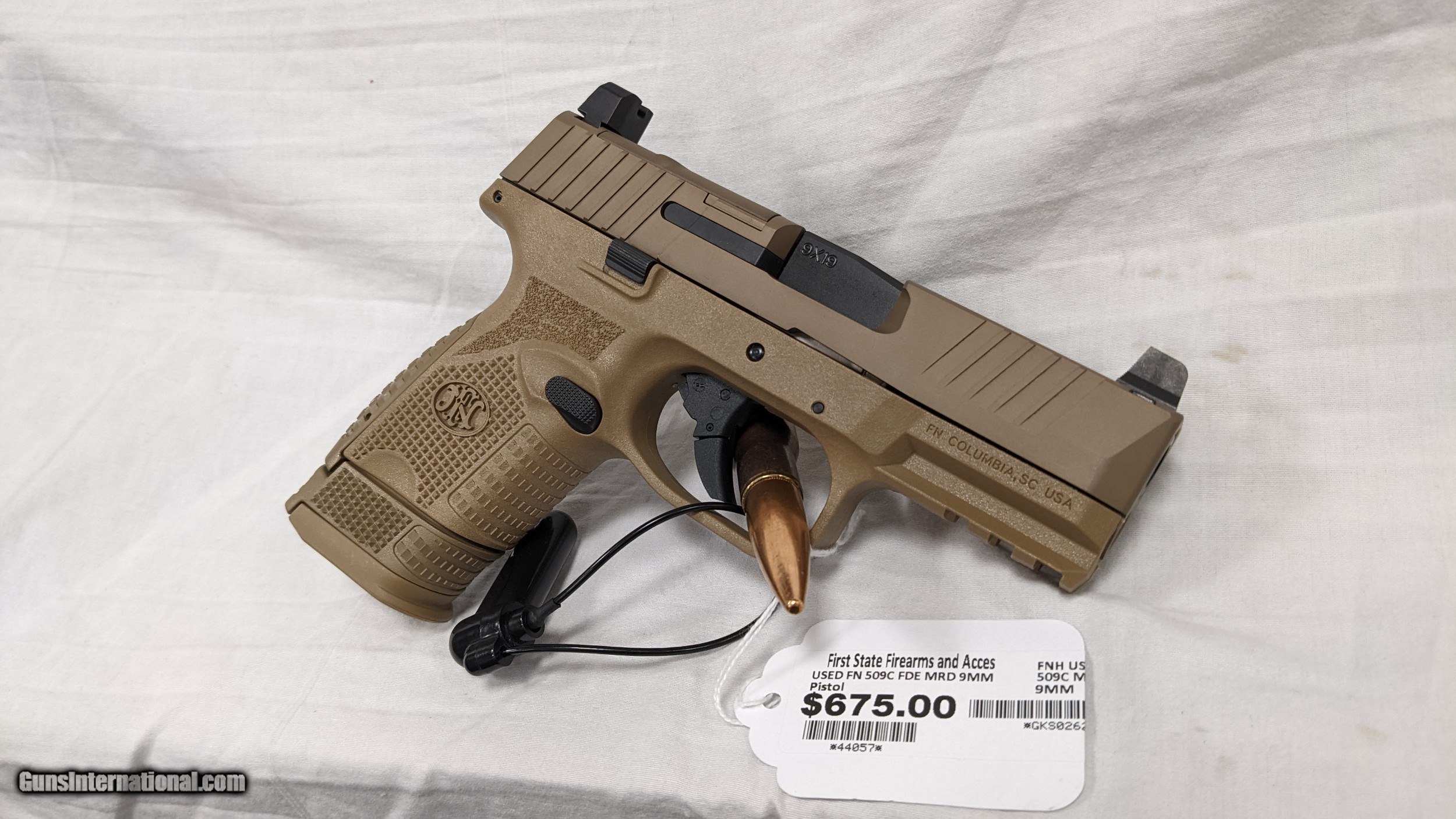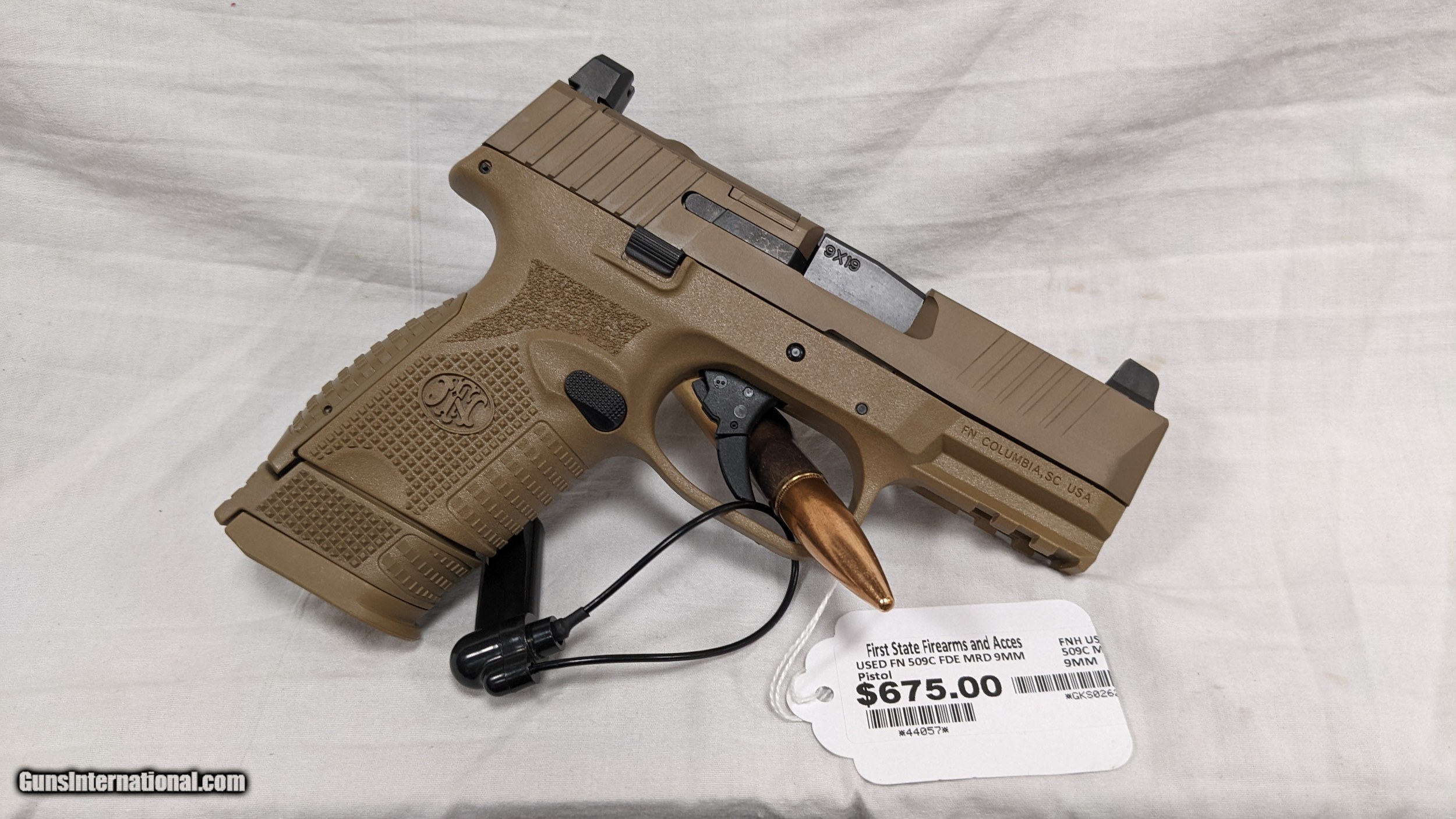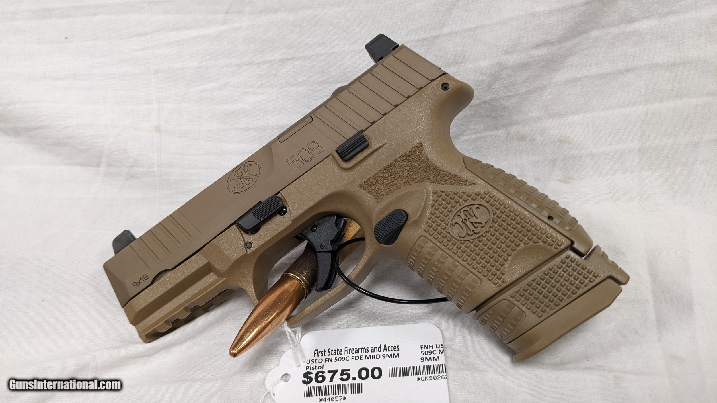 Description: This is a used item. While we do not test fire our used firearms, we perform an inspection and function check to determine the firearm is fully functional to the best of our ability. Please call with any questions. If you are interested in purchasing this item, please give us a call. Please have the "Seller #" and/or "Guns International #" ready along with the contact information for the FFL you'd like the item shipped to. For Sale from First State Firearms & Accessories AKA The Gun Shop in New Castle, DE. Shipping is $25.00. SOLD Handgun Caliber: 9x19mm Parabellum (9mm Luger, 9x19mm NATO) Manufacturer: FN USA Model: 509C FDE Serial Number: GKS0262872 Condition: USED, GOOD Action: SEMI-AUTO Extras: BOX, X1 SPARE MAGAZINE |