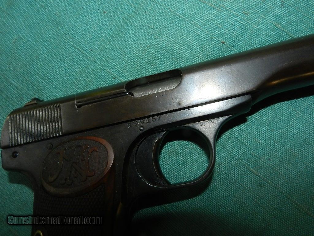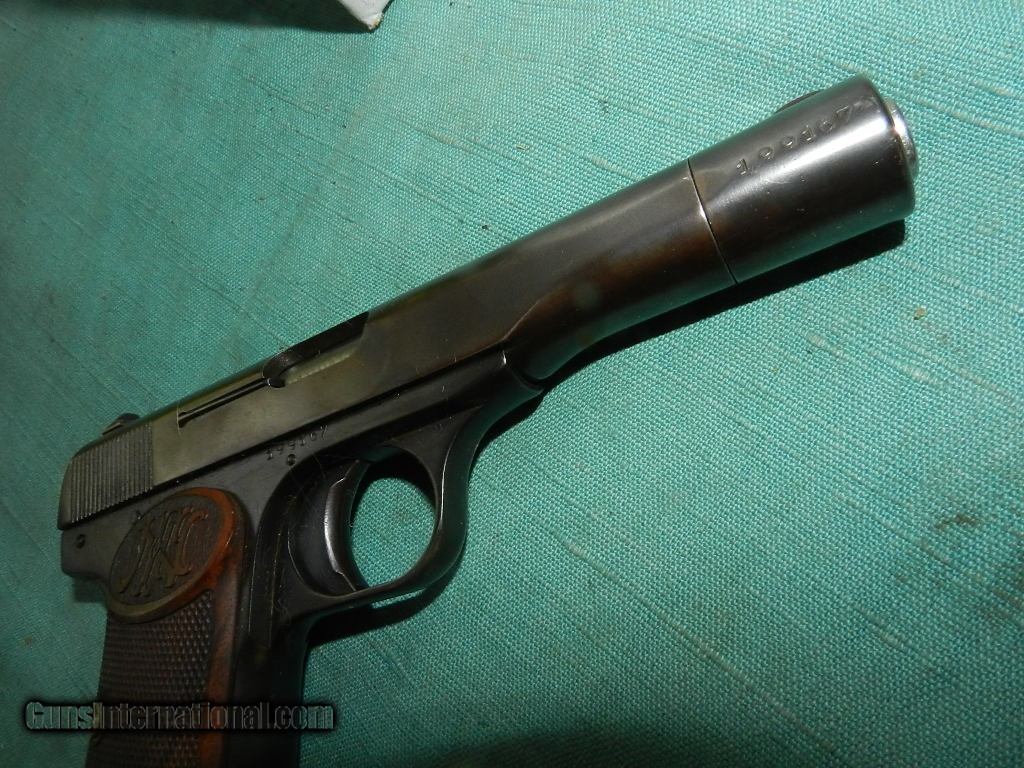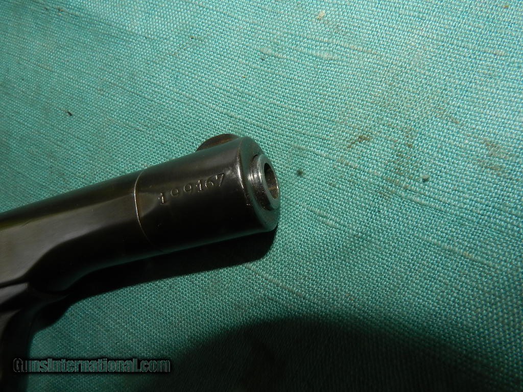 Description: FN model 1922 with WWII German proofs and matching numbers , with a clean bore , and some surface freckling in the grooves.. The finish is fading, to plum brown on the slide . The wood grips are very clean, and the gun locks uo tight. Has a FN marked slide. When buying a gun always have it examined by a competent gunsmith before shooting. To buy a gun from me you must get a direct email for me, with details, and shipping cost. We don’t have a web site .I prefer money orders or a check. Item ships when funds come in. I try to keep guns affordable, which means I make less money than most dealers. You won’t get altitude sickness, or nose bleed, with my prices! I consistently have the best selection of older guns If you attempt to buy, you must still contact us for details . Best to email to buy. Sometimes a local person can stop buy and purchase before the gun is removed. Sometimes not home to get calls. Some guns are required shipment to a gun dealer near you for a transfer to you when it arrives. Otherwise many older or black powder guns ship to your door. With the widest selection of older guns at great prices, We don’t have a store, and sell on the internet only. I’m easy to get along with. Thank You. SOLD Curio/Relic: Yes |