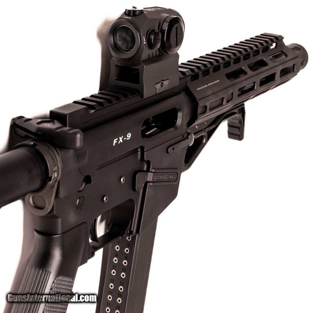 Description: Guns Listing ID: 836667 The Freedom Ordnance FX-9 is an AR pistol chambered in 9mm. This is a great choice for self-defense, range time, or plinking. This pistol is compatible with a wide variety of Armalite pattern accessories on the market. This handgun features two 30-round magazines and a Sig Sauer Romeo red dot. Get the best bang for your buck when you get a Certified Used Firearm . When you see the Certified Used stamp on any of our firearms, you can be confident that you’re getting exactly what you want – a gun only in very good to excellent condition and held to the highest quality standard. All Certified Used Guns come with a ‘no questions asked’ return policy . PLUS, ALL CERTIFIED USED GUNS SHIP FREE! SOLD Manufacturer: FREEDOM ORDNANCE Model: FX-9 Caliber Info: 9MM LUGER (9X19 PARA) Condition: Used - Certified Barrels: 8.0" BARREL Finish: BLACK |