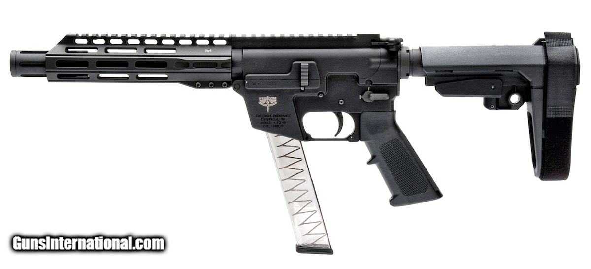 Description: Guns Listing ID: 498799 The FX-9P8S pistol (Freedom Xtreme) has a familiar set of operating controls for the avid AR-15 user, it accepts AR-15 stocks and buffer tube assemblies, as well as most free-float AR-15 rail assemblies. It features a SB Tactical SBA3 pistol brace and 7.5\" M-Lok Ultra Slim rail. The FX-9P8S is machined from billet material, anodized type III aluminum components, and full hard nitride steel components including the barrel, bolt, ejector, last round hold open, feed ramp, and extractor for extended wear properties and corrosion resistance. The upper and lower receiver are more than 1\" shorter than a standard AR-15, making it more compact and lighter. The FX-9p8S uses standard, double-stack Glock-style 9mm magazines. SOLD Manufacturer: FREEDOM ORDNANCE Model: FX-9P8S Caliber Info: 9MM LUGER (9X19 PARA) Condition: new Barrels: 8 BARREL Finish: BLACK |
