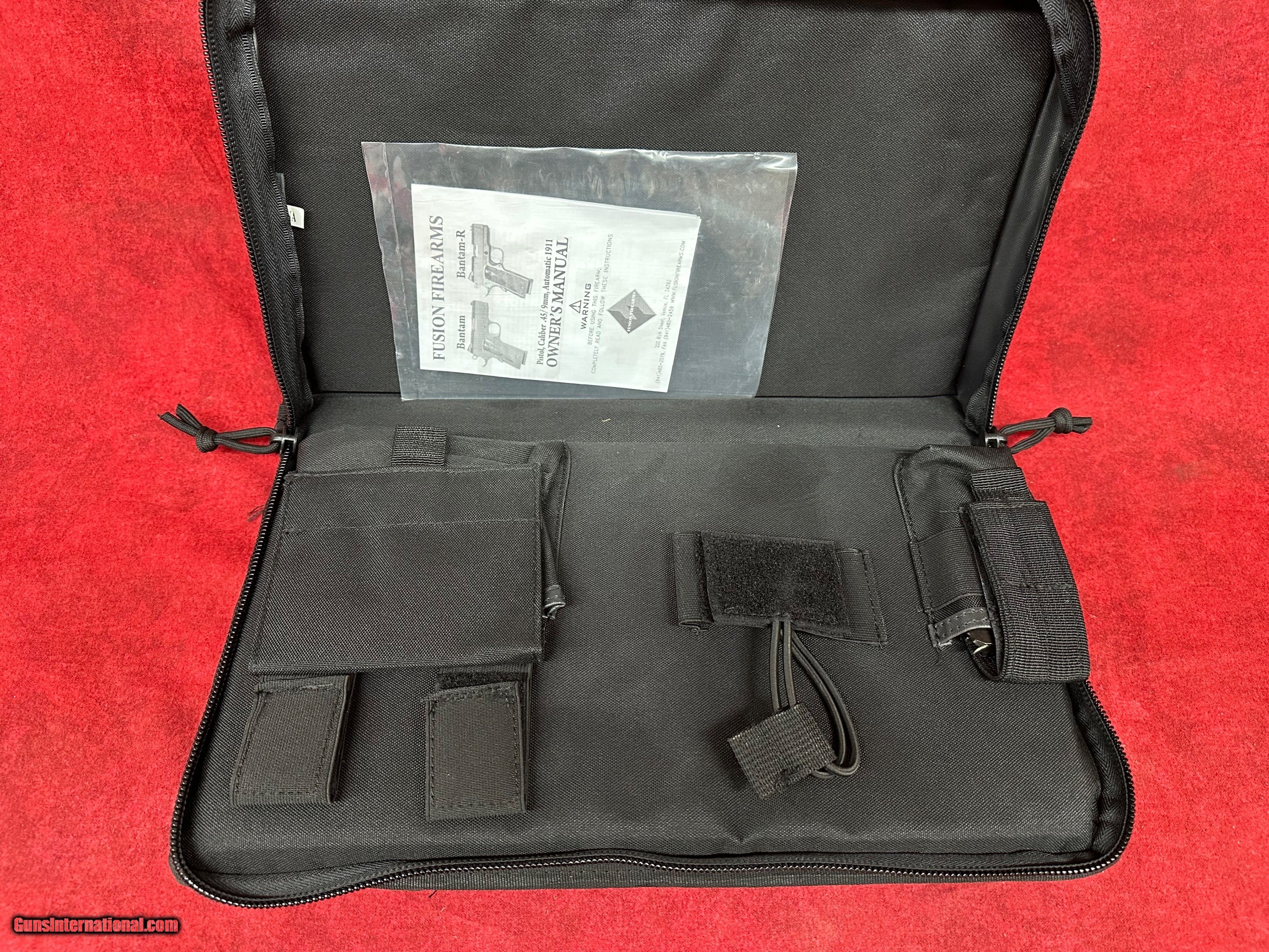 Description: FUSION 1911 BANTAM 9MM 3" DEFENDER BLUED (1911BANTAMR9) This pistol is brand new in the soft case. Original 1911 Series 70 Colt design (3" Defender 1911) All Steel Configuration, No Plastic Frame, Slide and Barrel Precision CNC machined from Bar-Stock Precision gunsmith Fitted frame, Slide & barrel HD Chrome barrel 1:16 Twist, for excellent accuracy and easy cleaning Positive barrel lock-up allows for superior accuracy out of the box Lowered and relieved ejection port for improved performance Tuned Power style extractor Traditional 70 series design compatible with standard Colt style replacement parts Standard Dovetail (Novak Compatible) sight cuts for easy sight change outs Premium Red Cocobolo exotic hardwood grips Fusion Limited Lifetime Warranty Weight: 32.84oz Without Mag Comes with 1 Magazine Firearms will need to be transferred through a FFL holder. Buyer to pay $45.00 S&H to lower 48. Prices reflect cash discount. There will be 3% added to credit card sales. Email us with any questions or call 1 if we don't get back to you within 24 hours, either we didn't get your email, or you are not getting ours(we try to answer all our emails as quick as possible). Over 2500 guns on hand, contact us for any of your needs. If we don't have what you want, we can try to find it. Handgun Caliber: 9x19mm Parabellum (9mm Luger, 9x19mm NATO) Manufacturer: Fusion Firearms Model: 1911 Bantam Defender Barrel Length: 3 Condition: Brand New Price: $899.00 Buy Now Contact Seller |