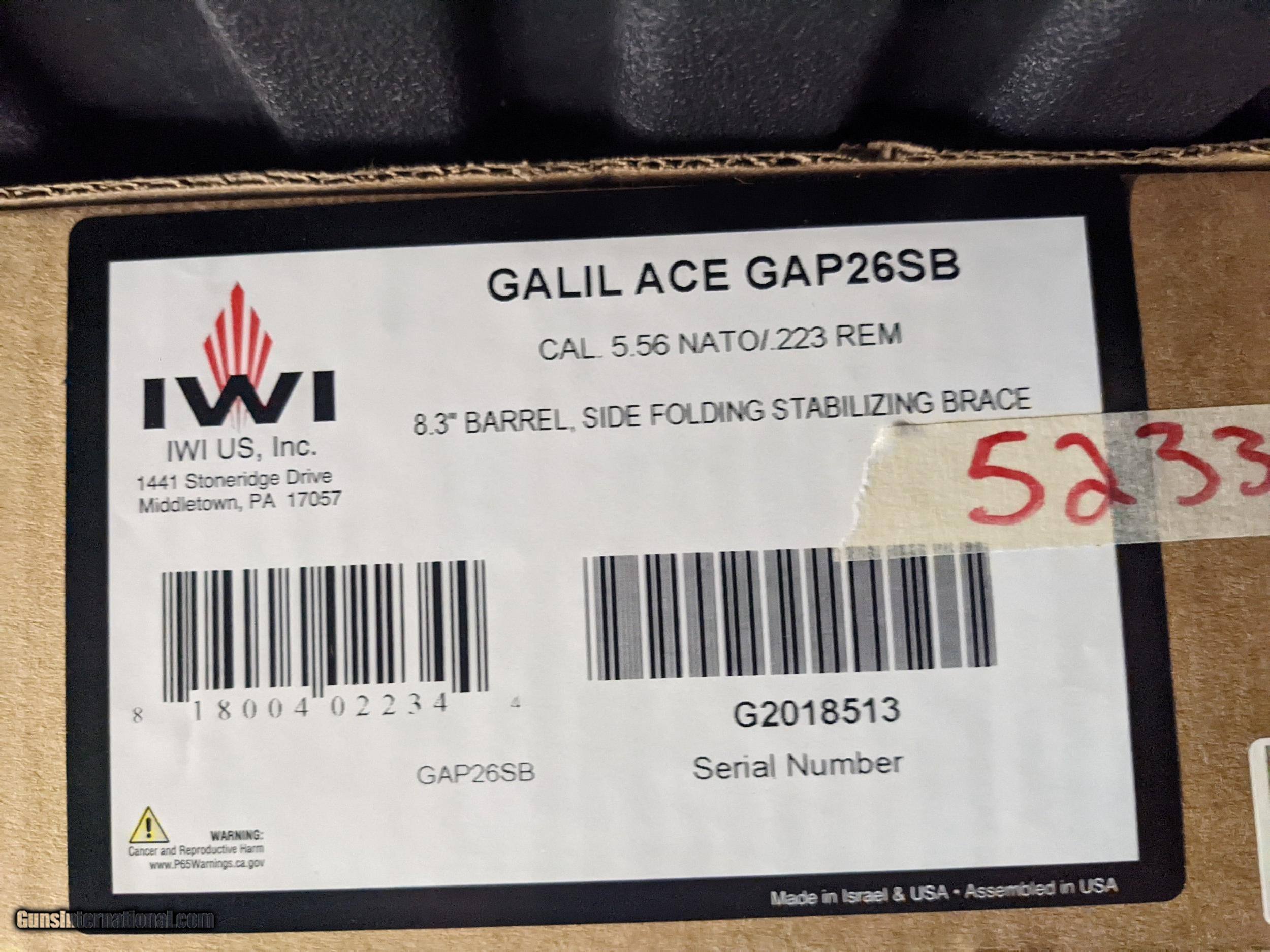 NEW IWI Galil ACE Gen II Pistol (5.56 NATO/223, M-LOK, FOLDING SBA-3 Brace) GAP26SB