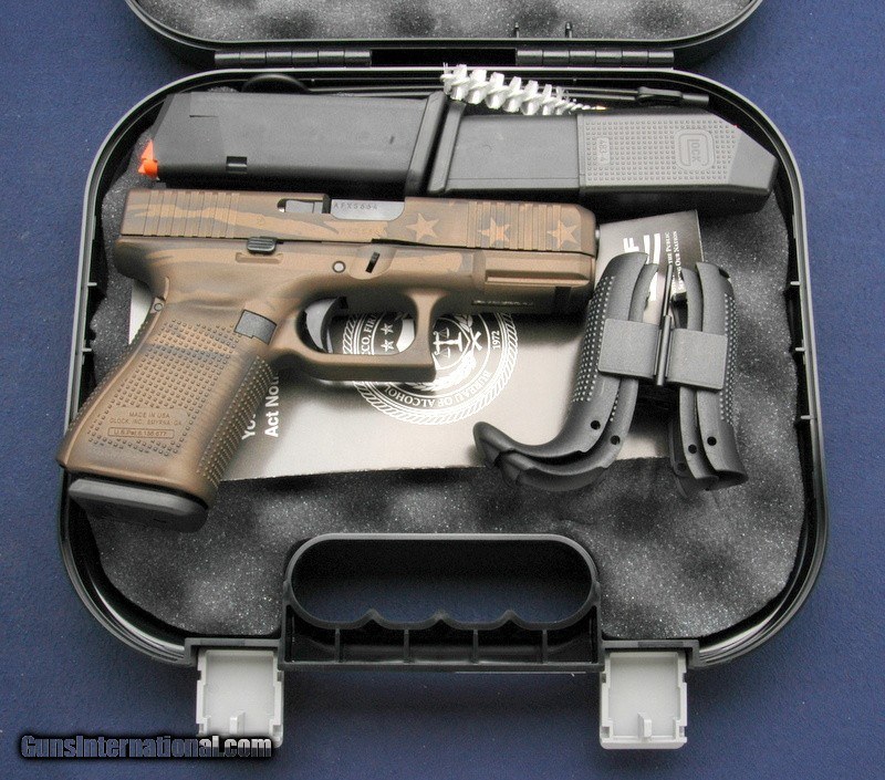 Description: Glock 19 Gen5 with the new Evolved coating. This one is called "Battleworn Flag". Otherwise you have a new in the box Glock 19 Gen5 with three 15 round magazines, mag loder, backstraps and all inserts. $35 shipping to the lower 48, 3% surcharge for using a CC. If you choose to pay with a personal check, we will hold the item for up to 10 days to make sure that it clears. Please expedite such pymts as we will hold an item on your word for 5 days. SOLD Handgun Caliber: 9x19mm Parabellum (9mm Luger, 9x19mm NATO) |