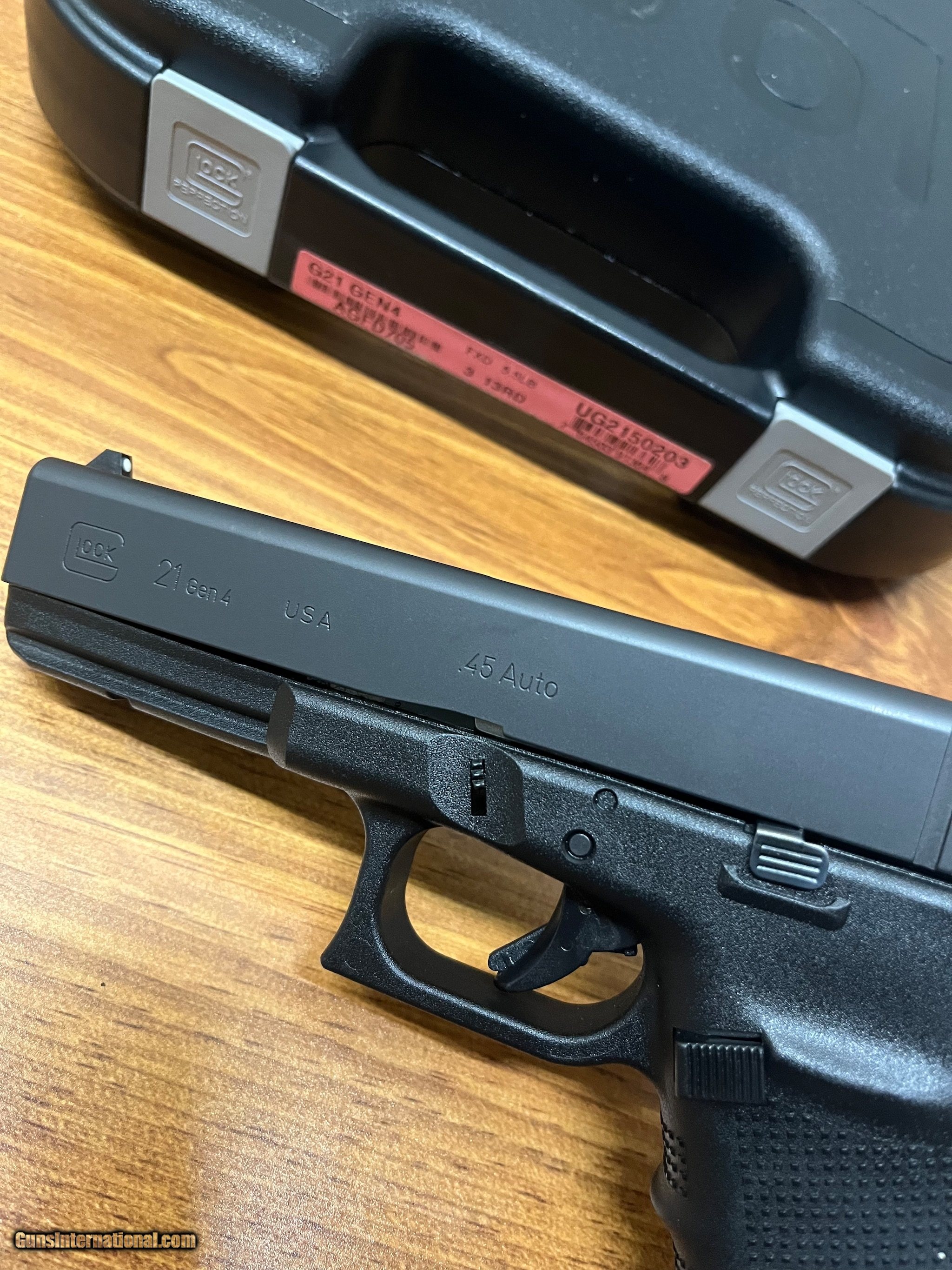 Description: Guns Listing ID: 672562 4.6 barrel length 3 - 13 round magazines Original hard case Fixed sights SOLD Manufacturer: GLOCK Model: 21 GEN 4 Caliber Info: .45 ACP Condition: Used - Non-Certified Barrels: 4.6 BARREL Finish: POLYMER |