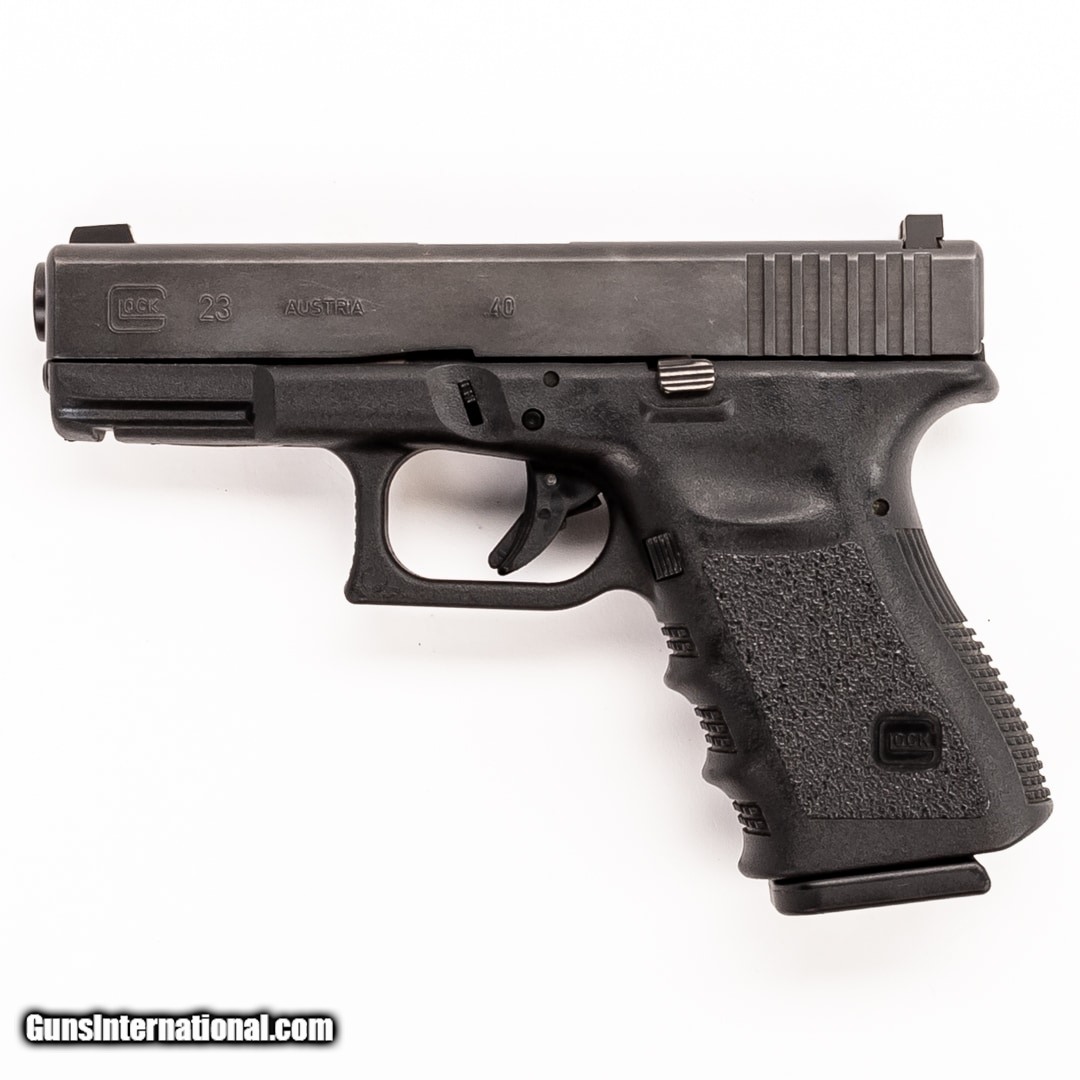 Description: Guns Listing ID: 362476 For sale is a Glock 23. This 40 S&W handgun is excellent for personal protection thanks to its easy to operate design, powerful cartridge, and Glock‚‚s famous ergonomics. 1-13 round magazine, 1-10 round magazine, and a Glock case are included SOLD Manufacturer: GLOCK Model: G23 GEN3 Caliber Info: .40 S&W Condition: Used - Certified Barrels: 4 BARREL Finish: BLACK |
