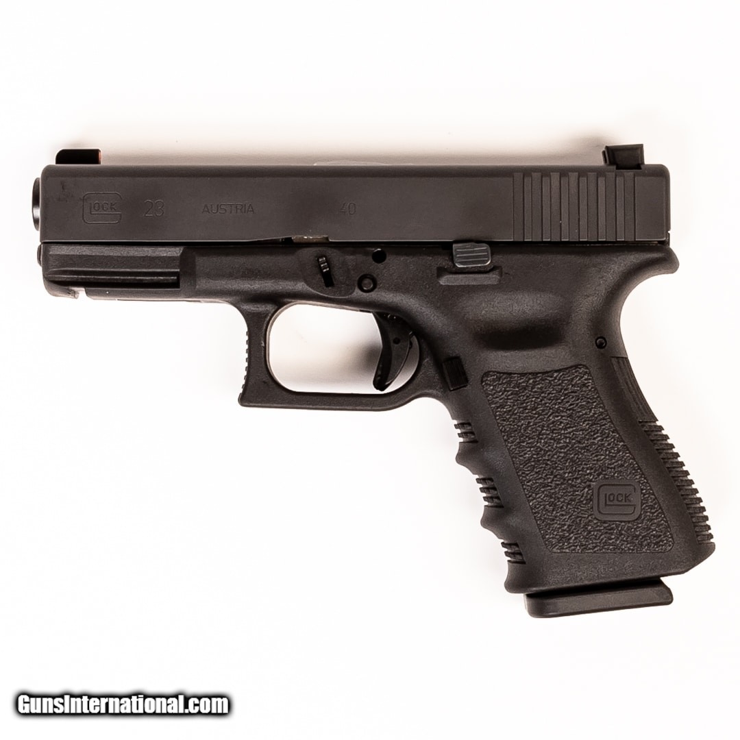 Description: Guns Listing ID: 451358 The Glock 23 is a semi-automatic handgun built on a polymer frame. It offers unparalleled durability and reliability, even in adverse conditions. Chambered in 40 S&W with a design that remains relatively lightweight, this pistol is popular as a service weapon and equally suited for self-defense. The pebbled grip of the Gen 3 is designed for minimal slippage and greater comfort, and to this end, features a lined front and back strap, finger grooves, and a thumb rest on each side of the frame. This G23 Gen 3 includes the original case, manual, two 10-round magazines, one 13-round magazine, and a speedloader. SOLD Manufacturer: GLOCK Model: G23 GEN3 Caliber Info: .40 S&W Condition: Used - Certified Barrels: 4 BARREL Finish: BLACK |