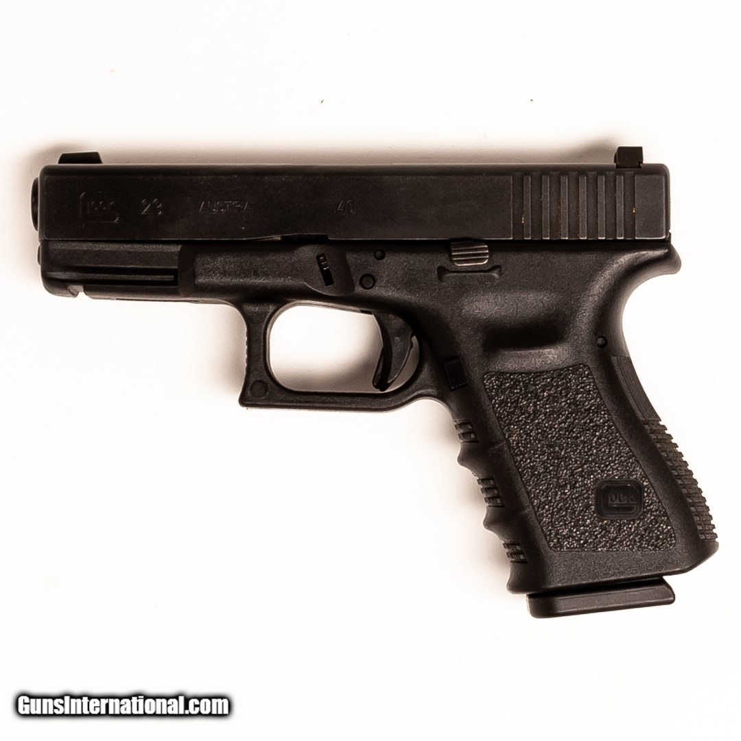 Description: Guns Listing ID: 619581 The Glock 23 Gen 3 is the .40 S&W equivalent of the Glock 19 Gen 3. Designed to be powerful, large enough for duty use, and small enough for concealment, the Glock 23 is an excellent universal sidearm. 2-13 round magazines are included. Equipped with night sights. SOLD Manufacturer: GLOCK Model: G23 GEN3 Caliber Info: .40 S&W Condition: Used - Certified Barrels: 3.8 BARREL Finish: BLACK |