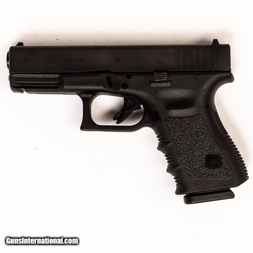 Description: Guns Listing ID: 475718 The Glock 23 is the .40 S&W equivalent of the Glock 19. Designed to be powerful, large enough for duty use, and small enough for concealment, the Glock 23 is an excellent universal sidearm. 2-13 round magazines, the original case, and a manual are included. SOLD Manufacturer: GLOCK Model: G23 Caliber Info: .40 S&W Condition: Used - Certified Barrels: 4 BARREL Finish: BLACK |