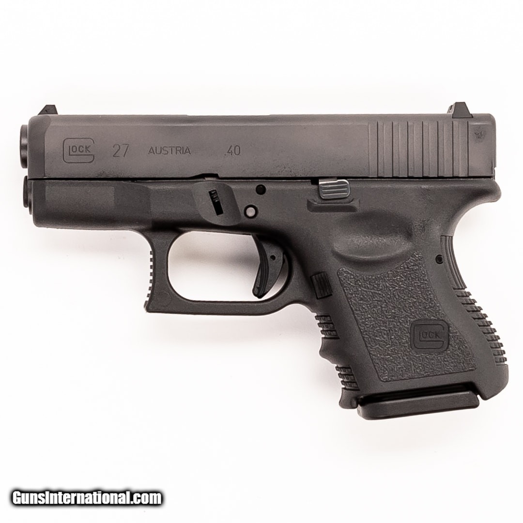 Description: Guns Listing ID: 404969 Compact and perfect for daily carry, the Glock 27 is chambered in .40 S&W. This reliable pistol is popular among law enforcement and civilians alike. SOLD Manufacturer: GLOCK Model: 27 GEN3 Caliber Info: .40 S&W Condition: Used - Certified Barrels: 3.43 BARREL Finish: BLACK |