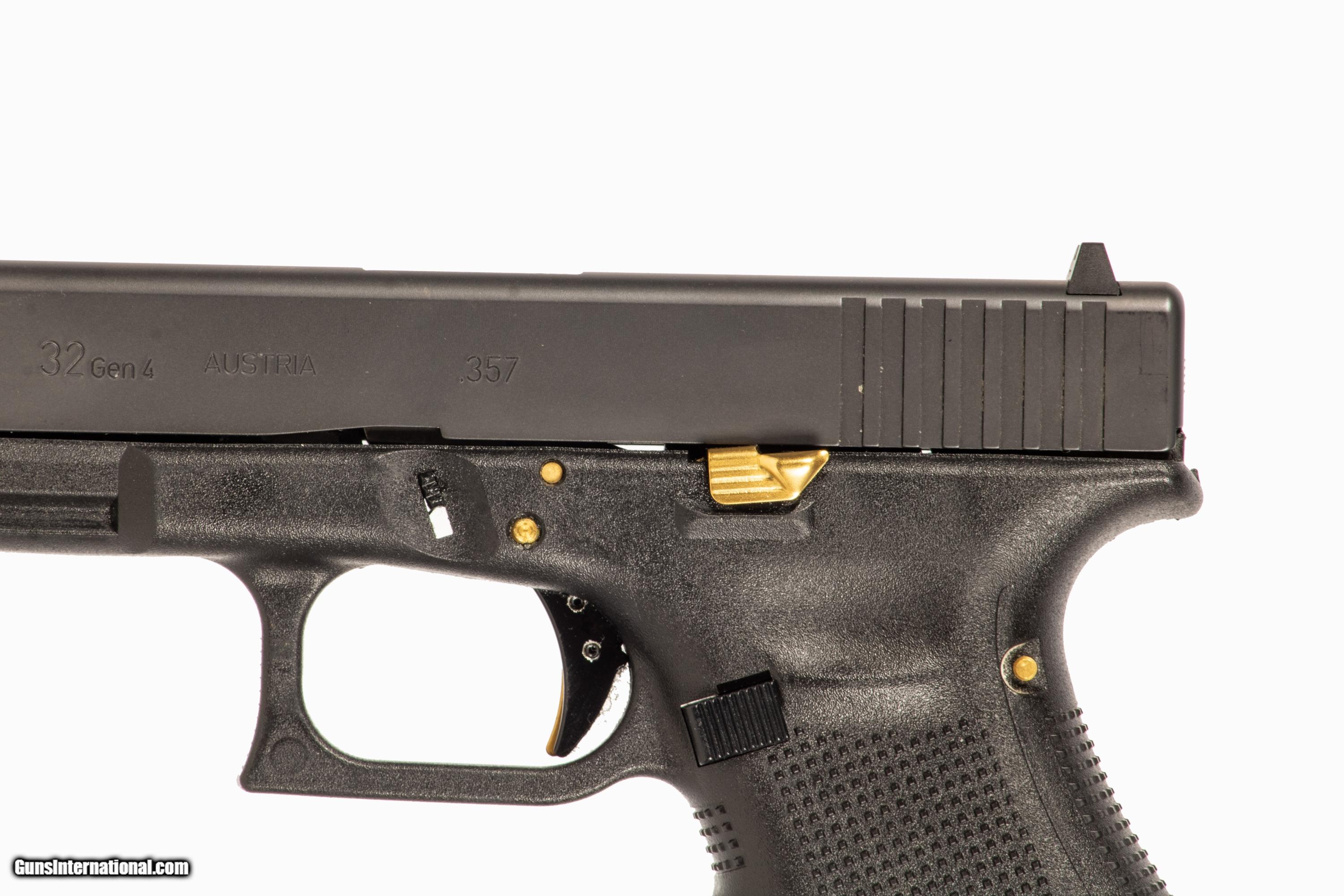 Glock 32 Gen 4 chambered in 357 Sig with a 4 inch barrel bright & shiny bore case and 4 extra magazines. This is a used firearm that is in very good condition and is covered by Dury's Lifetime Warranty.