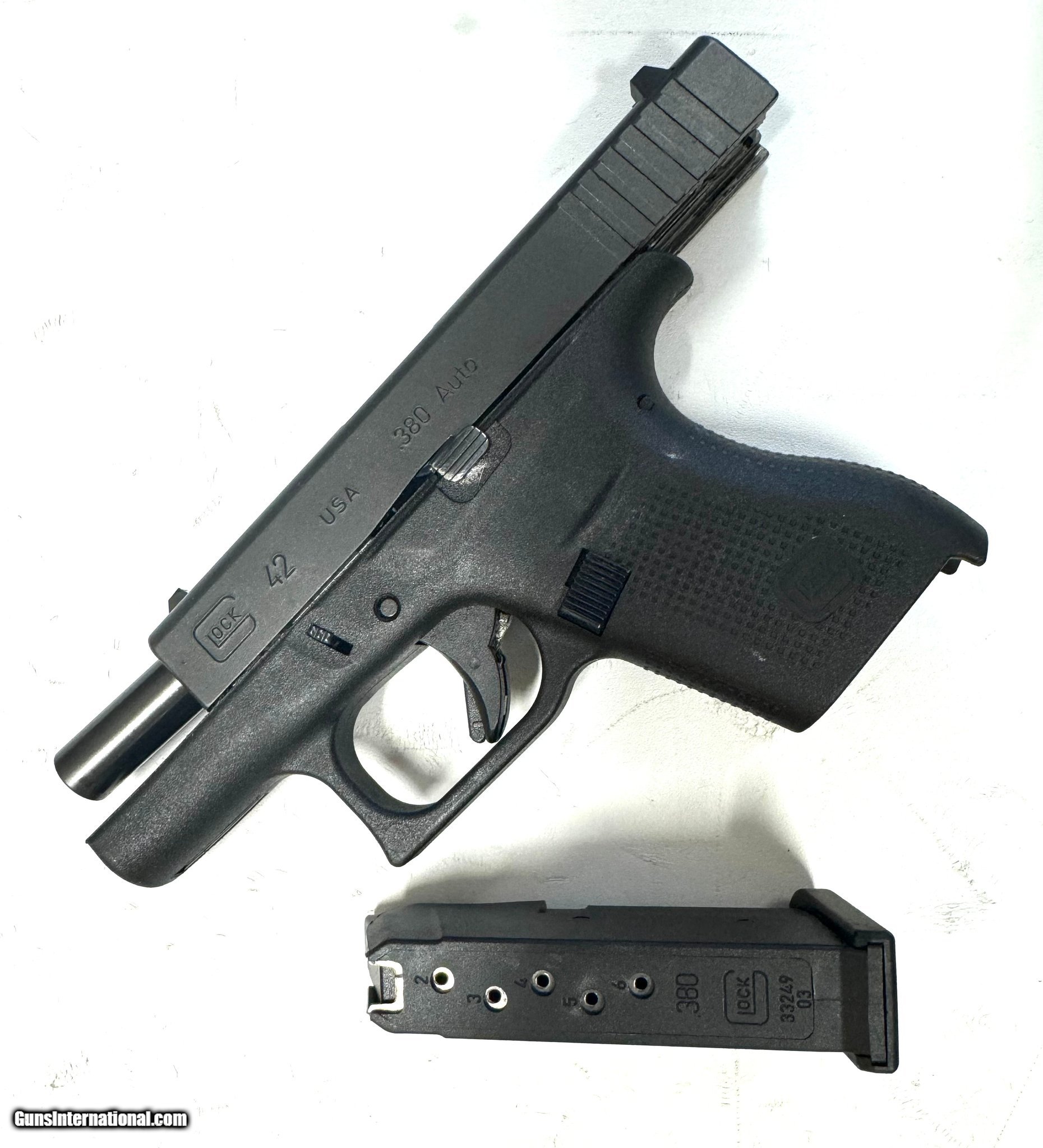Description: Guns Listing ID: 1316655 Firearm is in very good condition and in working order. NO case included. Comes with 1 magazine. SOLD Manufacturer: GLOCK Model: 42 Caliber Info: .380 ACP Condition: Used - Non-Certified Barrels: 3.25 BARREL Finish: BLACK |