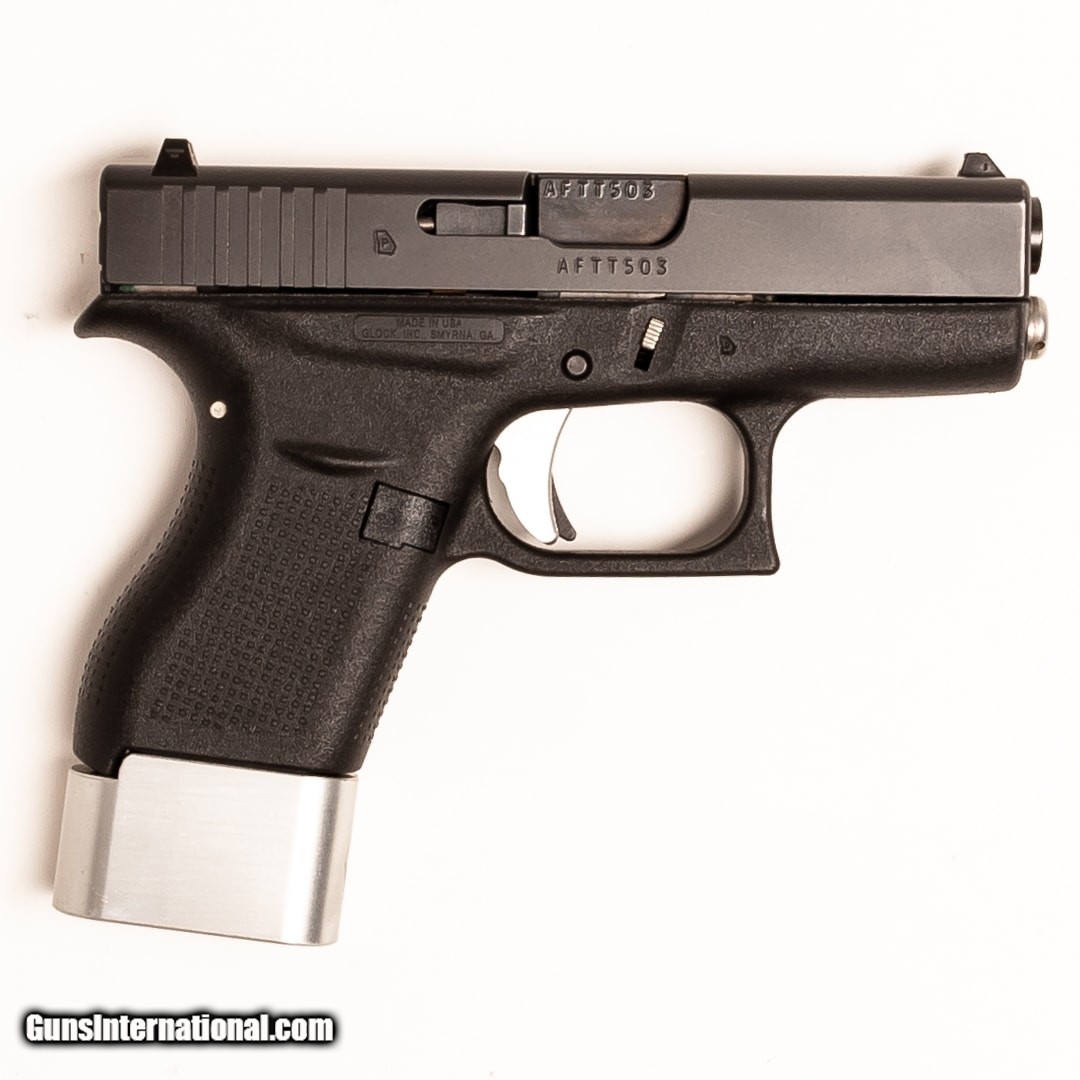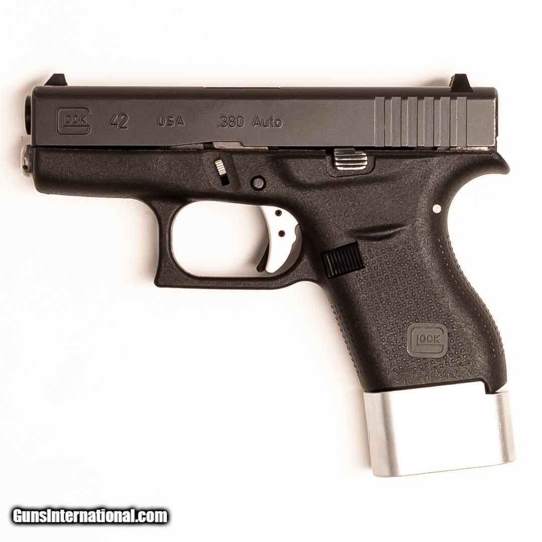 Description: Guns Listing ID: 559365 Made to be ultra-concealable, this Glock G42 is chambered in 380 ACP and designed in response to customer requests. This polymer-framed pistol utilizes a single stack magazine for a more compact design and weighs just over a pound when loaded. Plus, it has Glock‚‚s signature safe action trigger for a better shooting experience. This Glock 42 has a pyramid trigger and a Lasermax guide rod laser (needs batteries). There are scuffs to the metal on the back side of the slide. Purchase includes three 8-round magazines with GS extenders, right-handed IWB holster, and a magazine holster SOLD Manufacturer: GLOCK Model: G42 GEN5 Caliber Info: .380 ACP Condition: Used - Certified Barrels: 3.3 BARREL Finish: BLACK |