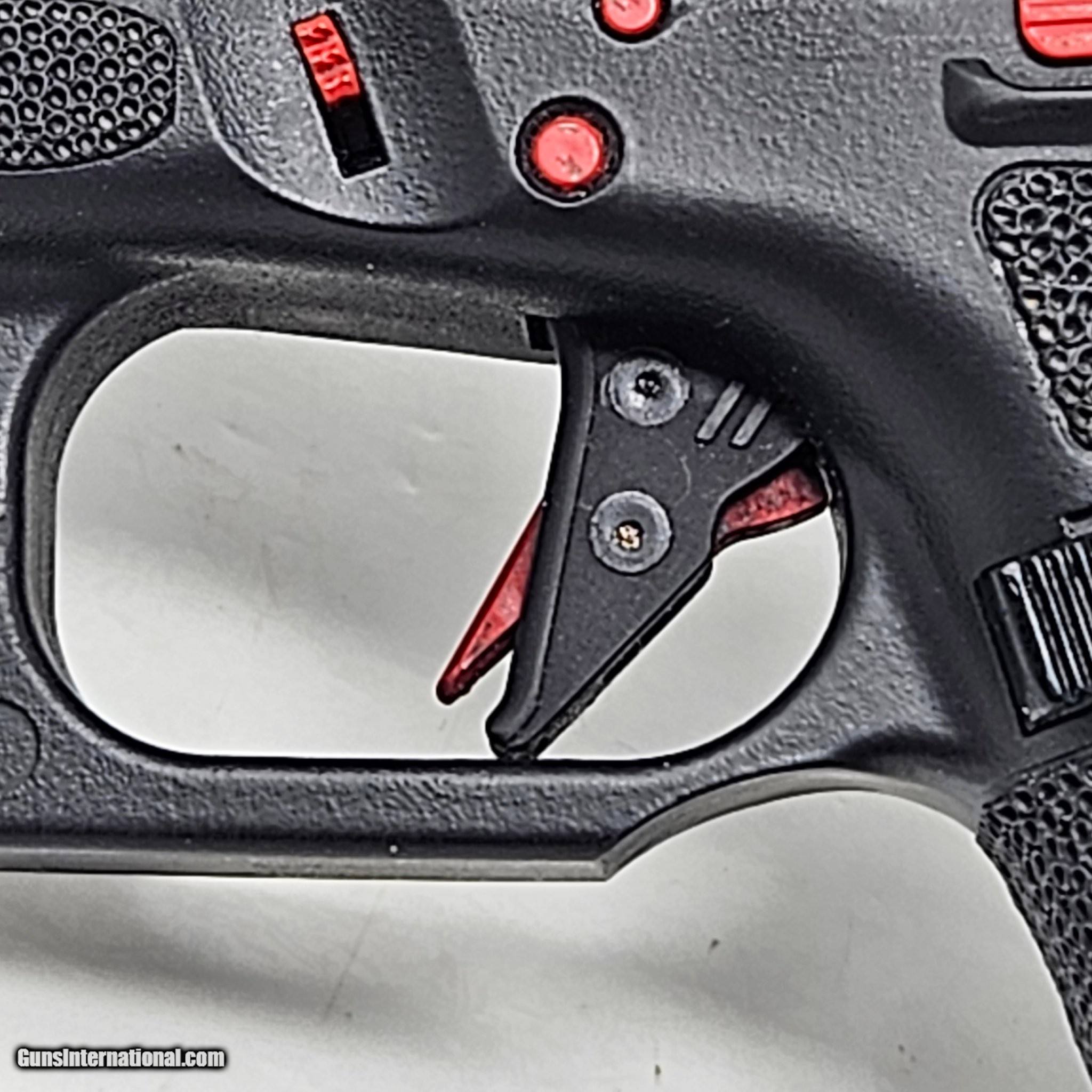 Description: Guns Listing ID: 582877 Heavily customized glock 19 gen 4 9mm. Includes one magazine with custom metal baseplate. Custom parts include: Zev trigger Red pin kit Red grip plug Professional stippling Trigger undercut Laser engraving (straight razor) Slide milled direct rmr Includes working holosun 507c Red dot Black cerakote frame Gunmetal cerakoted Slide Ameriglo Night Sights Firearm has wear from general use including scratches and holster wear Manufacturer: GLOCK Model: 19 gen 4 custom Caliber Info: 9MM LUGER (9x19 PARA) Condition: Used - Non-Certified Barrels: 4" BARREL Action: SEMI AUTOMATIC Finish: black cerakote Price: $649.99 Contact Seller |