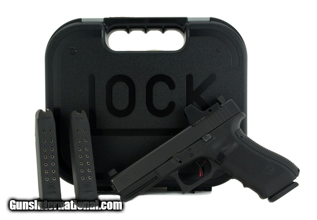 Description: Glock 17 Gen 4 9mm caliber pistol. Custom Glock 17 with RMR, Trijicon night sights and trigger job. In excellent condition with box and 2 extra magazines.