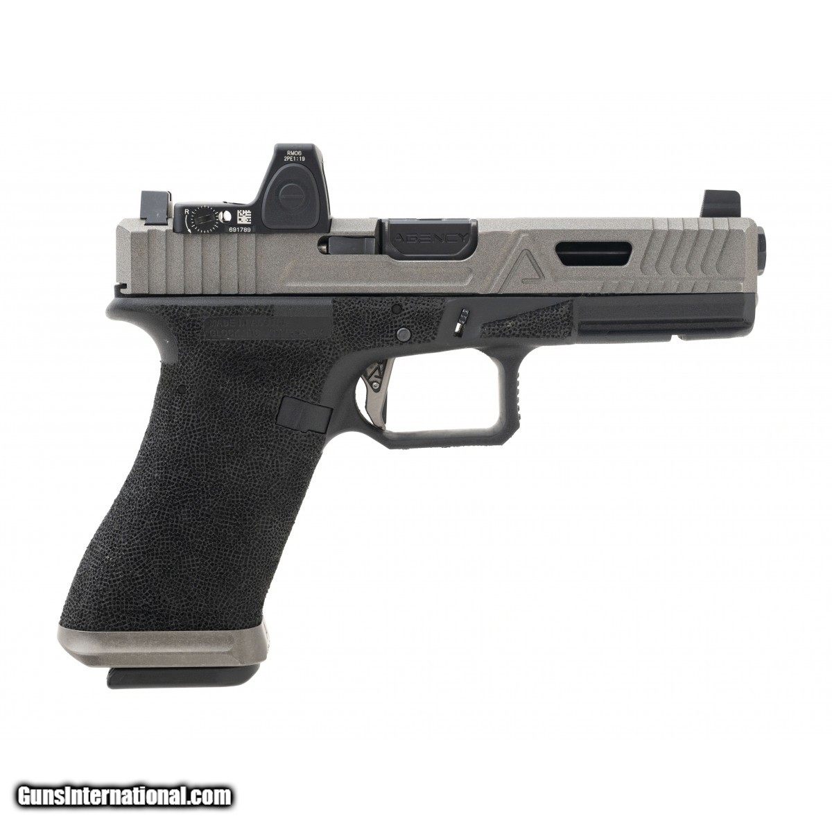 SN: WML351. Modern production. 9x19 parabellum in a 4.49"" barrel. Bore is excellent. Full size polymer frame handgun, Agency Arms match barrel, Agency Arms bonesaw cut slide, Agency Arms trigger with a custom stippled frame. Overall condition is excellent. Comes with Voodoo Tactical range bag, extra magazine, and Trijicon RMR optic.