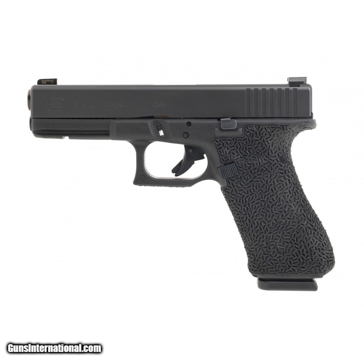 Gen 4 G17 with frame stippling and professional trigger undercut. Has Ameriglo orange front tritium sights and black serrated rear square notch. Comes with box. Good condition overall.