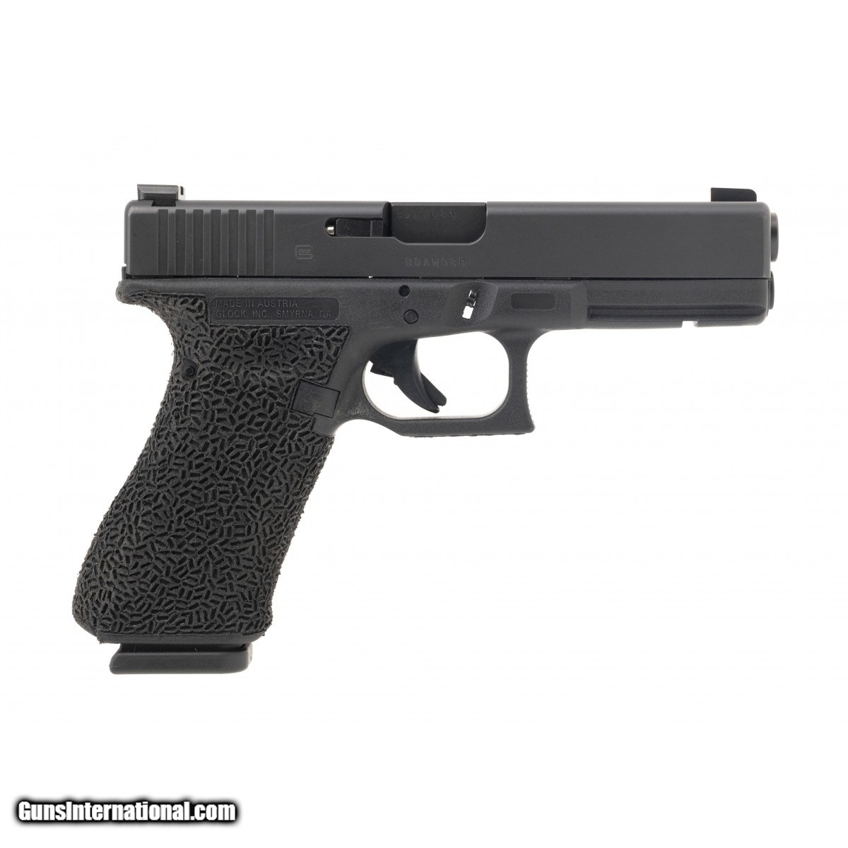 Description: " Gen 4 G17 with frame stippling and professional trigger undercut. Has Ameriglo orange front tritium sights and black serrated rear square notch. Comes with box. Good condition overall. SOLD |