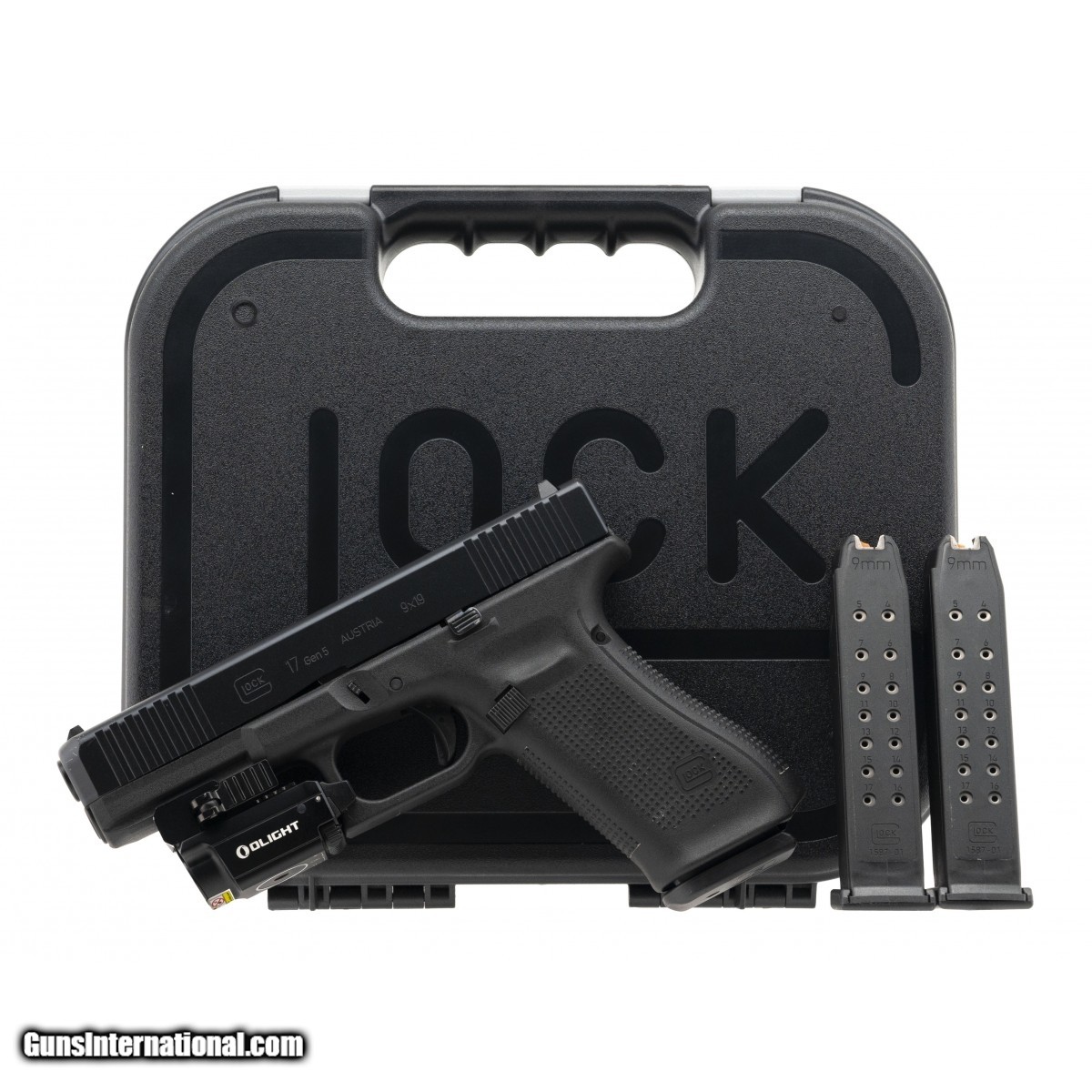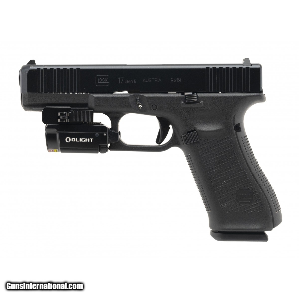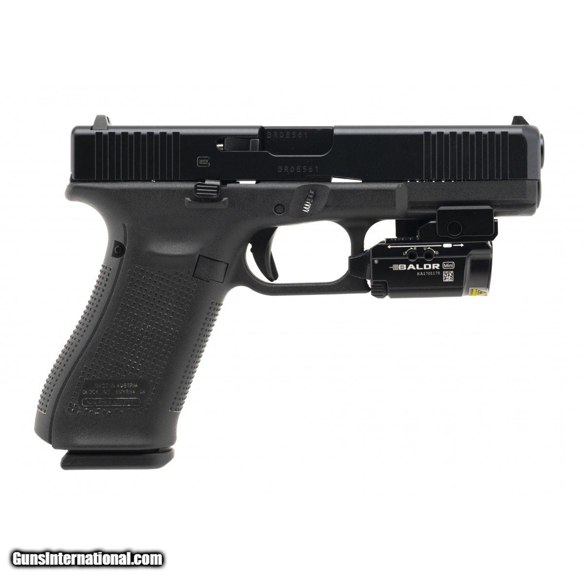 Polymer framed, striker fired full sized 9mm with Olight BALDR night light laser combo. Comes with box and 2 extra magazines.