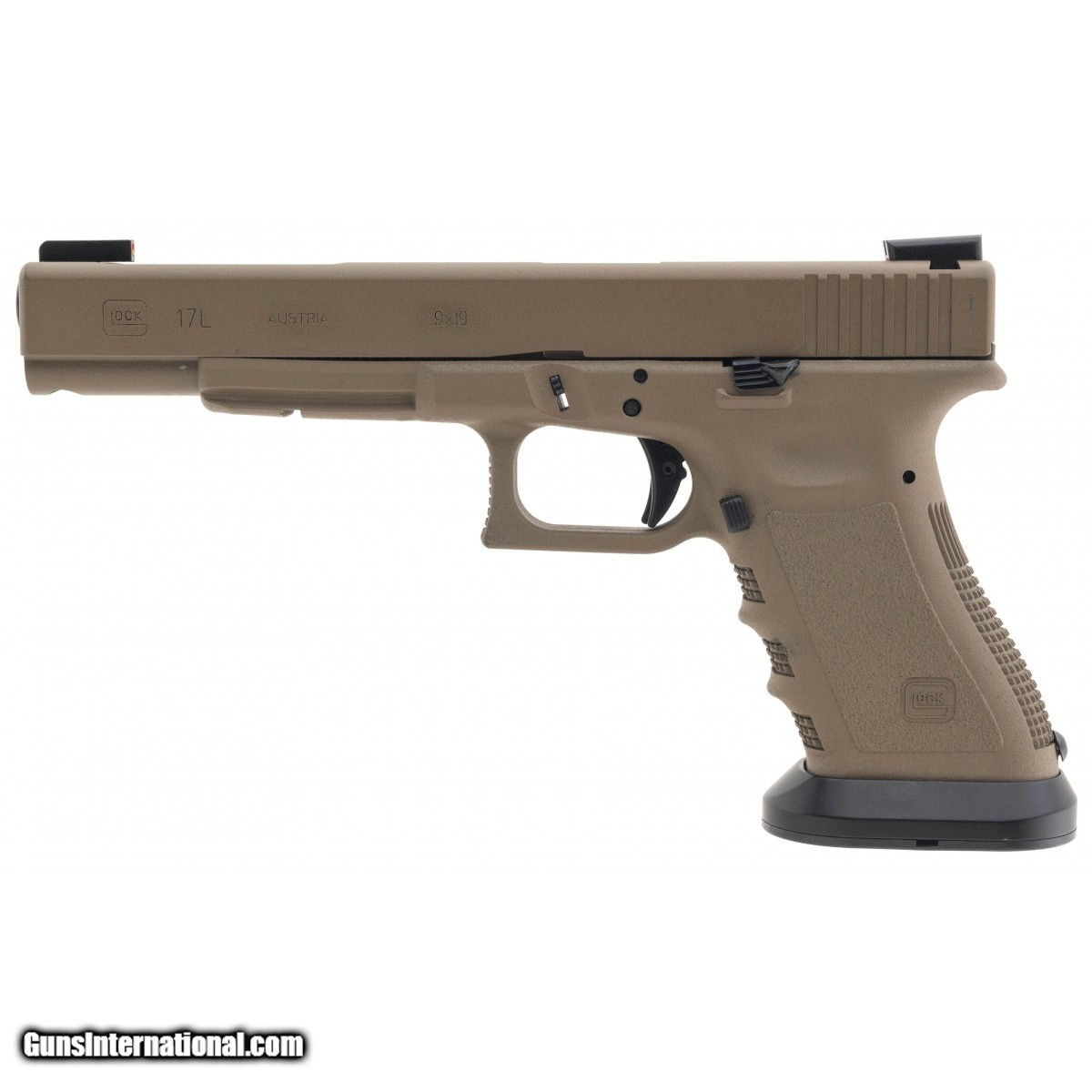Description: " SN: Scarce competition model pistol with a 6.02"" barrel and, a slotted slide. In a FDE finish. Overall in excellent condition, comes with the box, an enhanced magwell and, a fiber optic front sight. SOLD |