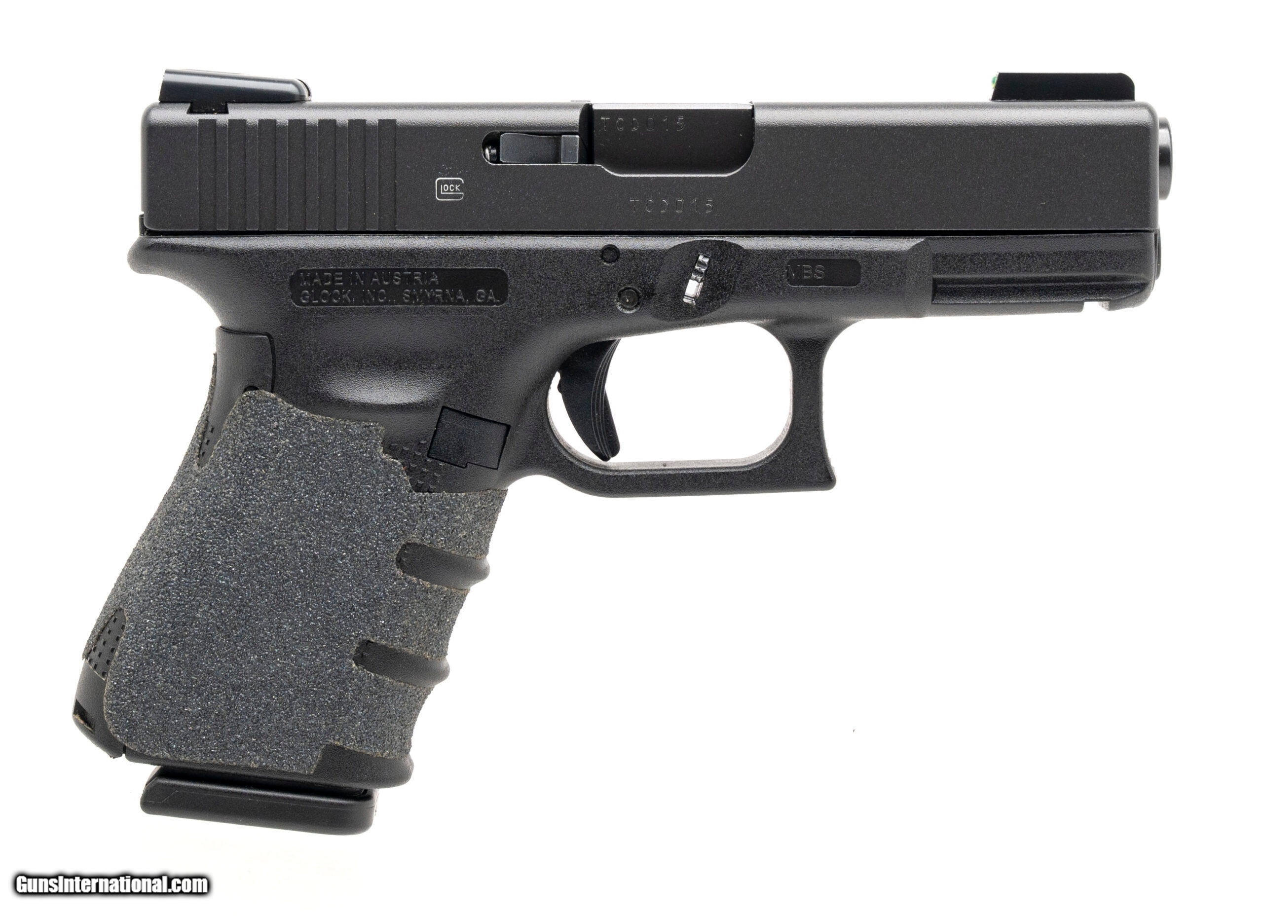 Description: "SN: TCD015. Modern Production, 9mm with a 4.02"" barrel. Bore is excellent. Compact striker-fired pistol with TruGlo fiber-optic front & rear sights, accessory rail, custom grip tape, matte black finish, and black polymer frame. Includes 3 additional magazines, and original carry case. Overall condition is excellent. SOLD |