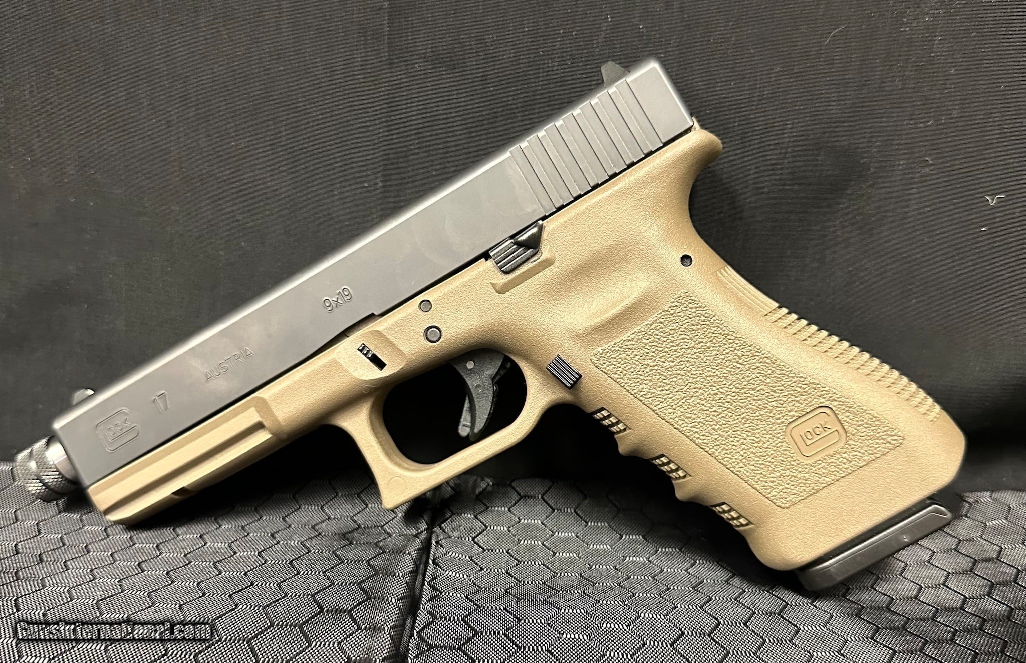 Description: Guns Listing ID: 1127052 The 9mm Glock 17 is the most widely used law enforcement pistol worldwide and is one of the best selling handguns Designed for professionals, Glock‚‚s G17 is the most widely used law enforcement pistol worldwide. It is trusted by law enforcement officers around the globe due to its unsurpassed reliability, and low weight. With the revolutionary \"Safe Action\" trigger system, the G17 is safe, easy, and quick - just what one needs incomes with 1 magazine in EXCELLENT conditio SOLD Manufacturer: GLOCK Model: 17 Caliber Info: 9MM LUGER (9X19 PARA) Condition: Used - Non-Certified Barrels: 5 BARREL Finish: TAN AND BLACK |