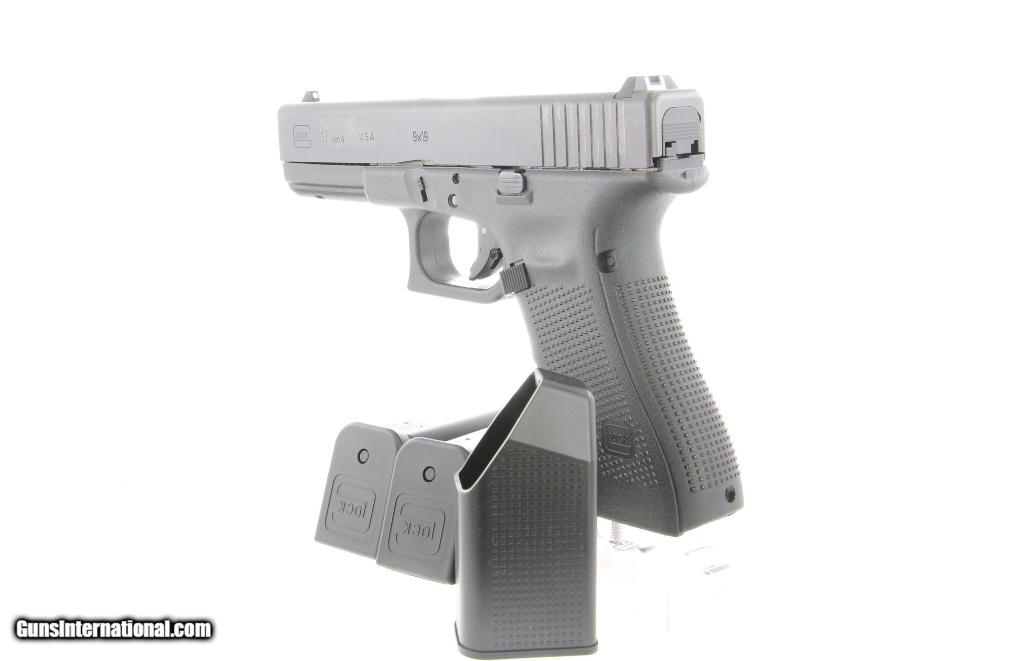 Description: Guns Listing ID: 1288555 This pistol is in perfect condition, aside from some mild use. The action is sharp and crisp, and ejects shells as it is supposed to. The bluing does show some mild use but it can be cleaned up and oiled with no issues. The stampings and markings are proud and very crisp, and visible. The barrel is clean, bright and shows very little residue of gunpowder. Overall condition is very good, and we believe this would be a great addition to anyone‚‚s safe. No Case Is Included Any and all of our firearms are listed as UNTESTED, nor do we make any claims that they have been tested for operation in regards to their firing abilities. Please review photos for the most accurate description of the item you are buying because that is the item you will receive. Please if you have questions regarding any of our listings, feel free to send us an email. Specifications: UPC 764503000874 MPN UG-17502-03 Brand Glock Main Model Glock 17 Gen 4 Model 17 Gen 4 Caliber 9mm Capacity 17+1 Features Magazine Loader, Cleaning Rod and Brush;Interchangeable Backstraps, Reversible Mag Catch Type Pistol: Semi-Auto Action Safe Action Finish Black Matte Sight FT: White Dot RR: White Outline Safety Safe Action-3 Separate Automatic Safeties Receiver Polymer with Finger Grooves Barrel Length 4.49 Overall Length 7.32 Weight 22.04 oz Number Of Mags 2 in Transit AECW478 SKU: 2405002 SOLD Manufacturer: GLOCK Model: 17 Caliber Info: 9MM LUGER (9X19 PARA) Condition: Used - Non-Certified Barrels: 4.5 BARREL |