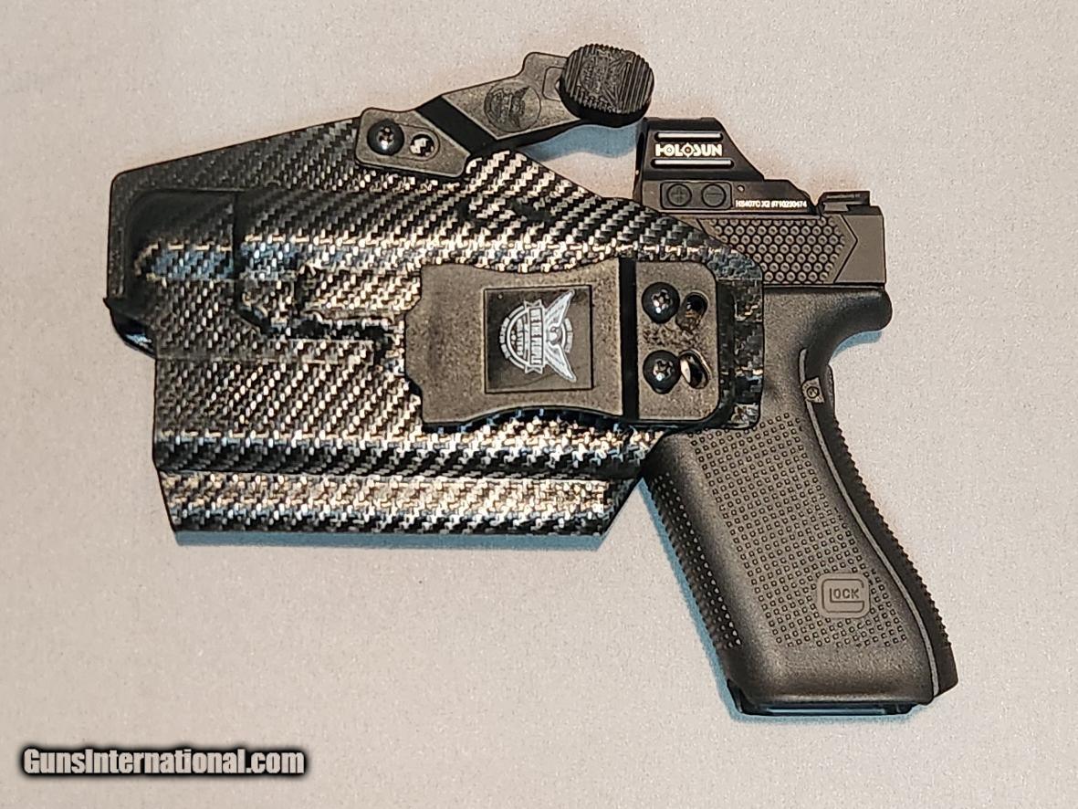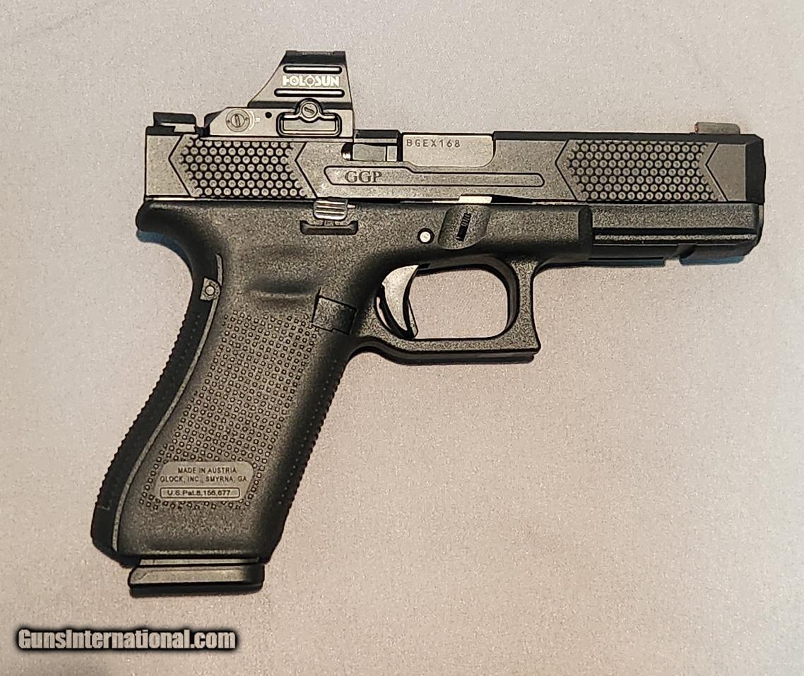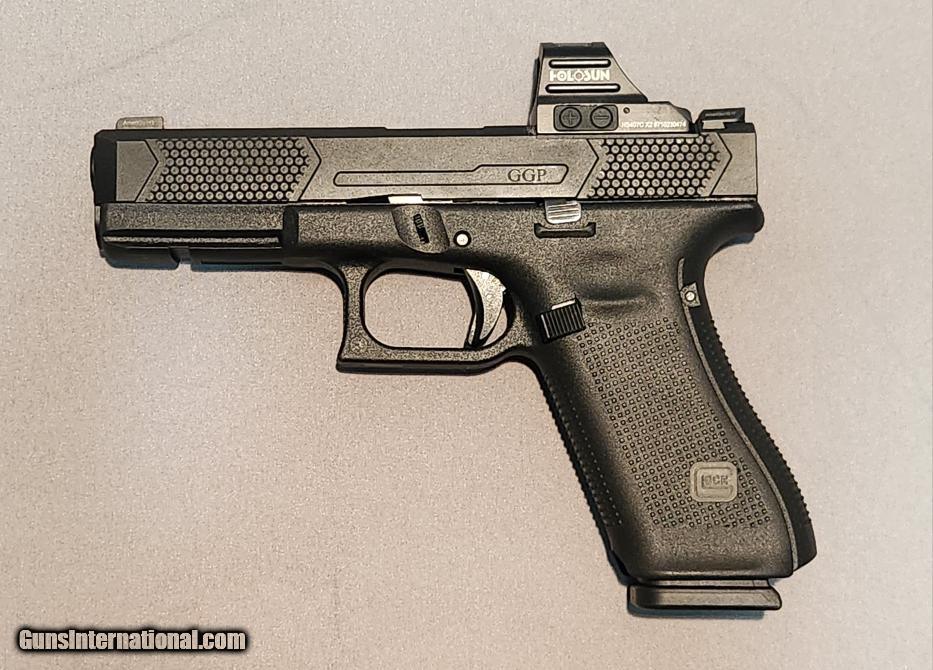 Description: Guns Listing ID: 1301942 Inventory Number: FCS094050 CUSTOM GLOCK 17 GEN 5, SEMI - AUTOMATIC, 9X19MM, BLACK (MATTE), 4.49\" Barrel Length, WITH HOLSUN HS407C X2 Perfect Custom Glock 17 No Visual Flaws, Only Light Dust on Optic Glass GGP Slide V4 Pattern Grip ~$418 Holosun HS407C X2 ~$249 OEM Case and Magazines Specific Details: NRA Modern Gun Condition Rating Standards: PERFECT: In New condition in every respect. Many collectors & dealers use \"As New\" to describe this condition). Finish / Color: Black (Matte) Case & Box: No - Not Included Caliber: 9X19MM Action: Semi - Automatic Magazine: Yes - and includes 3 extra magazines Holster: Yes - Holster SOLD Manufacturer: GLOCK Model: 17 Caliber Info: 9MM LUGER (9X19 PARA) Condition: Used - Non-Certified Barrels: 4.5 BARREL Finish: MATTE BLACK |