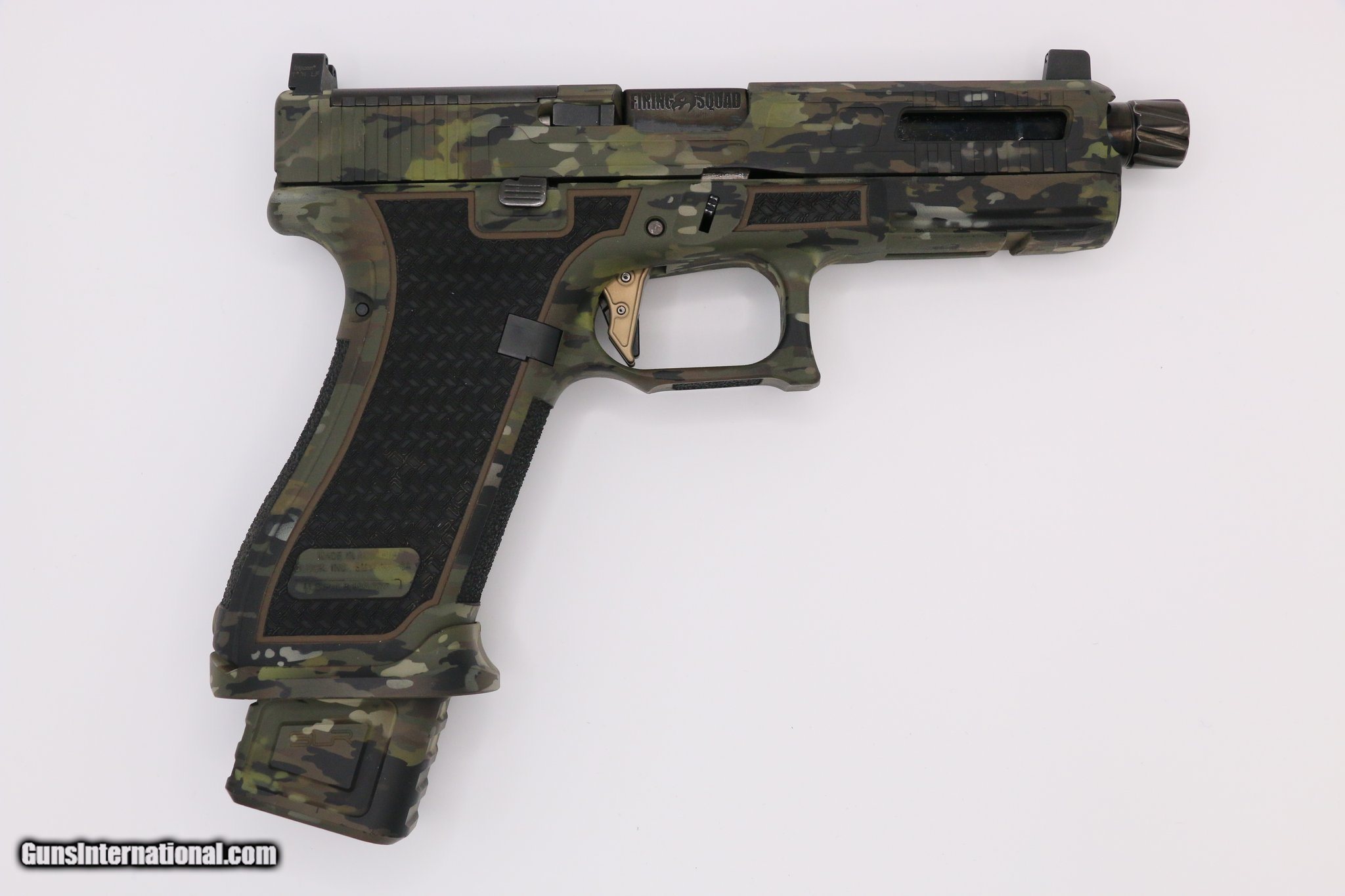 Description: Guns Listing ID: 1409998 Firing Squad Incorporated Customized - 1x21 Round Mag, 1x17 Round Mag - Firing Squad Inc - Trijicon Bright and Tough Tall Sights - Overwatch Tac Trigger FDE - SLR Magwell - Vickers Extended Mag Release - SLR +5 Mag Extension Spring - Cerakote Thick Stippling Border Brown Chocolate - G-Weave/Asphalt hybrid Stippling - Tactical Slide Cut - Cerakote Stippling Graphite Black - Firing Squad Threaded Polished Barrel See Pictures for Details SOLD Manufacturer: GLOCK Model: 17 Caliber Info: 9MM LUGER (9X19 PARA) Condition: Used - Non-Certified Barrels: 5 BARREL Finish: CAMO |